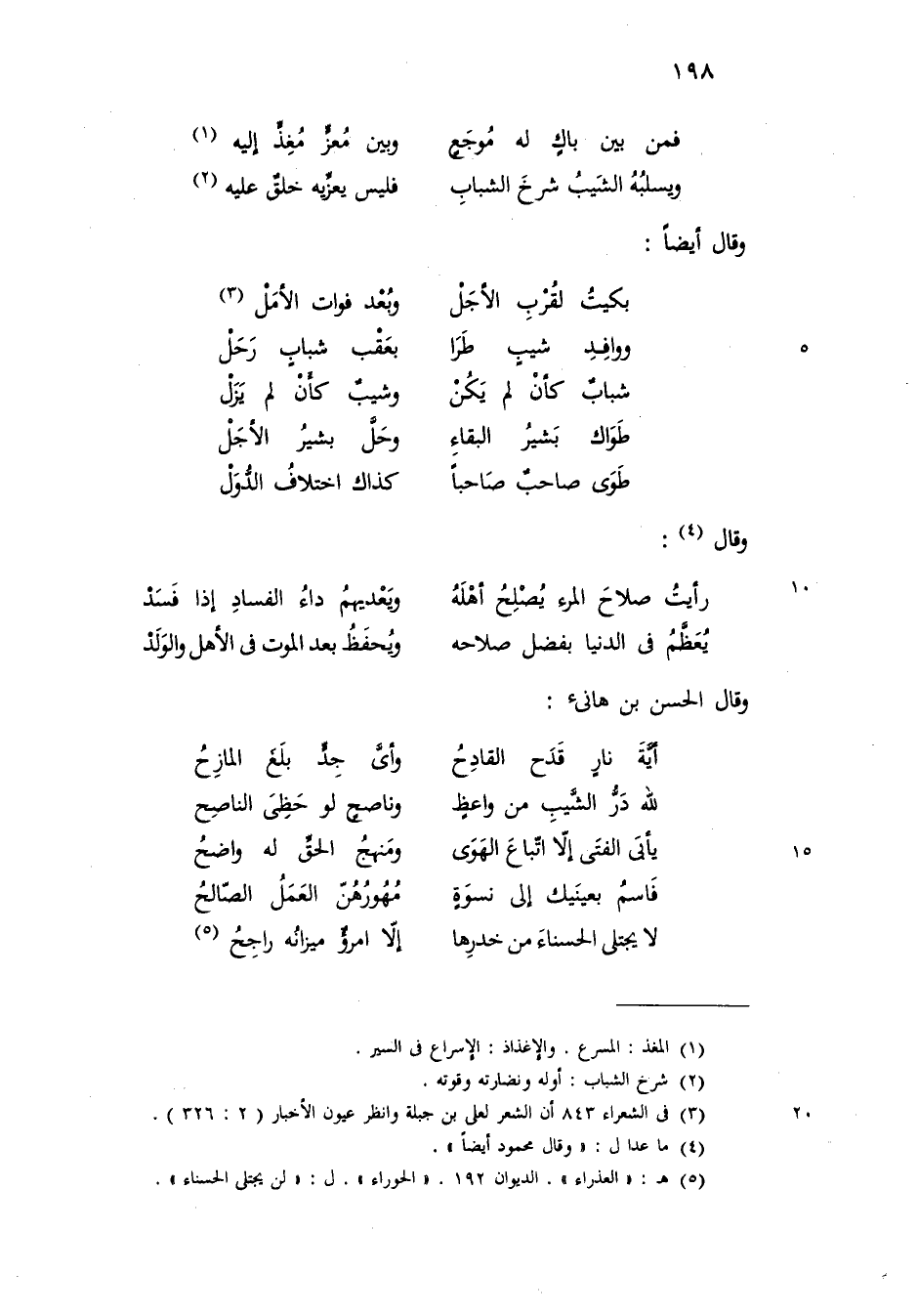 ( لله در الشيب من واعظ ... وناصح لو حظي الناصح )