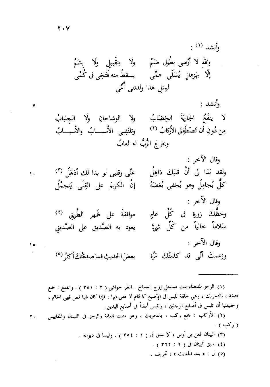 ( آخر والله لا أرضى بطول ضم ... ولا بتقبيل ولا بشم )