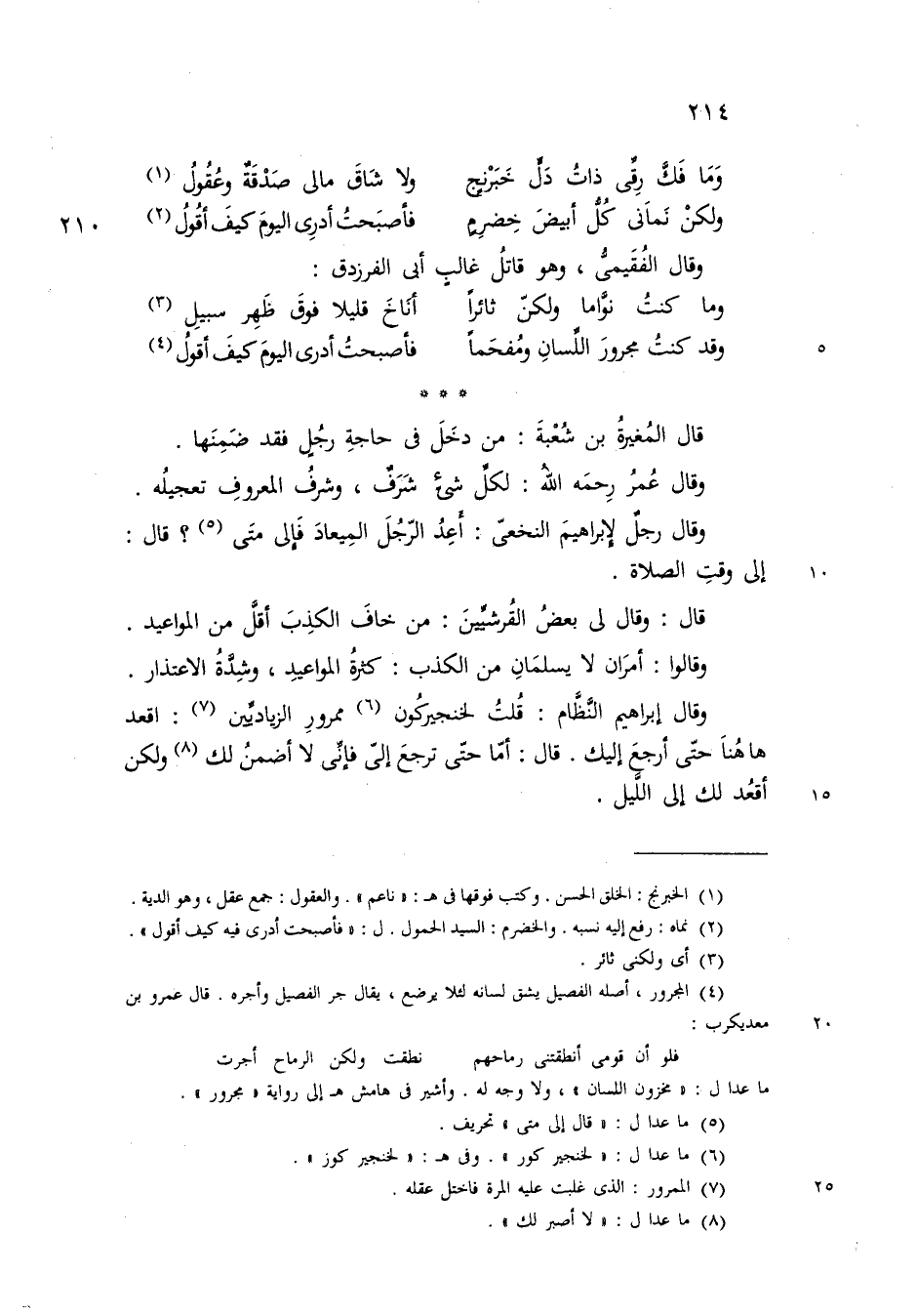 قال إبراهيم النظام قلت لخنجير كور ممرور الزياديين اقعد ههنا حتى ارجع اليك قال اما حتى ترجع فاني لا أصبر لك ولكن اقعد لك الى الليل@