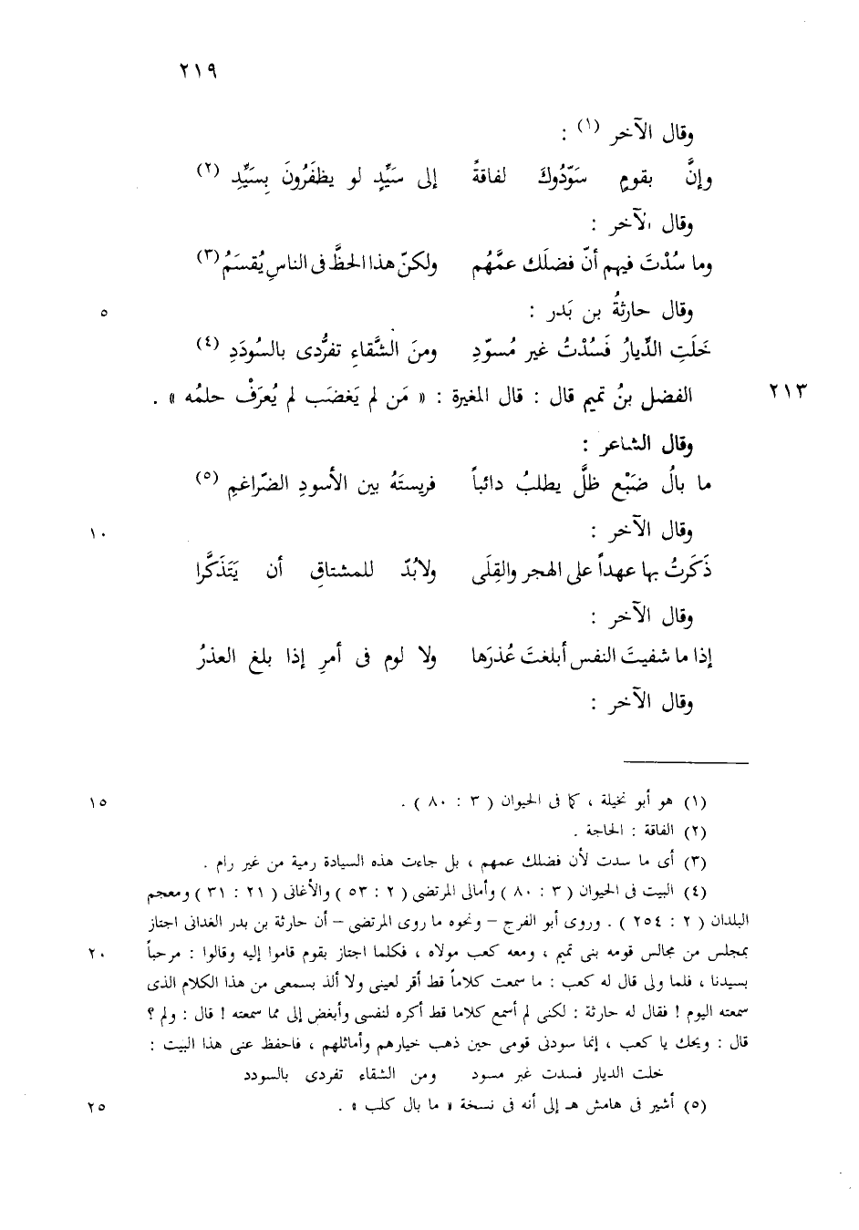 قال الفضل بن تميم قال المغيرة من لم يغضب لم يعرف حلمه