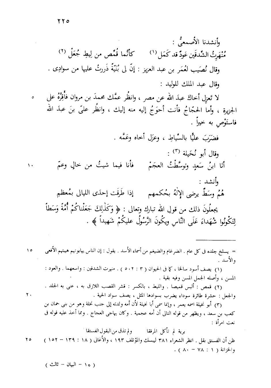 وقال نصيب لعمر بن عبدالعزيز ان لي بنية ذررت عليها من سوادي