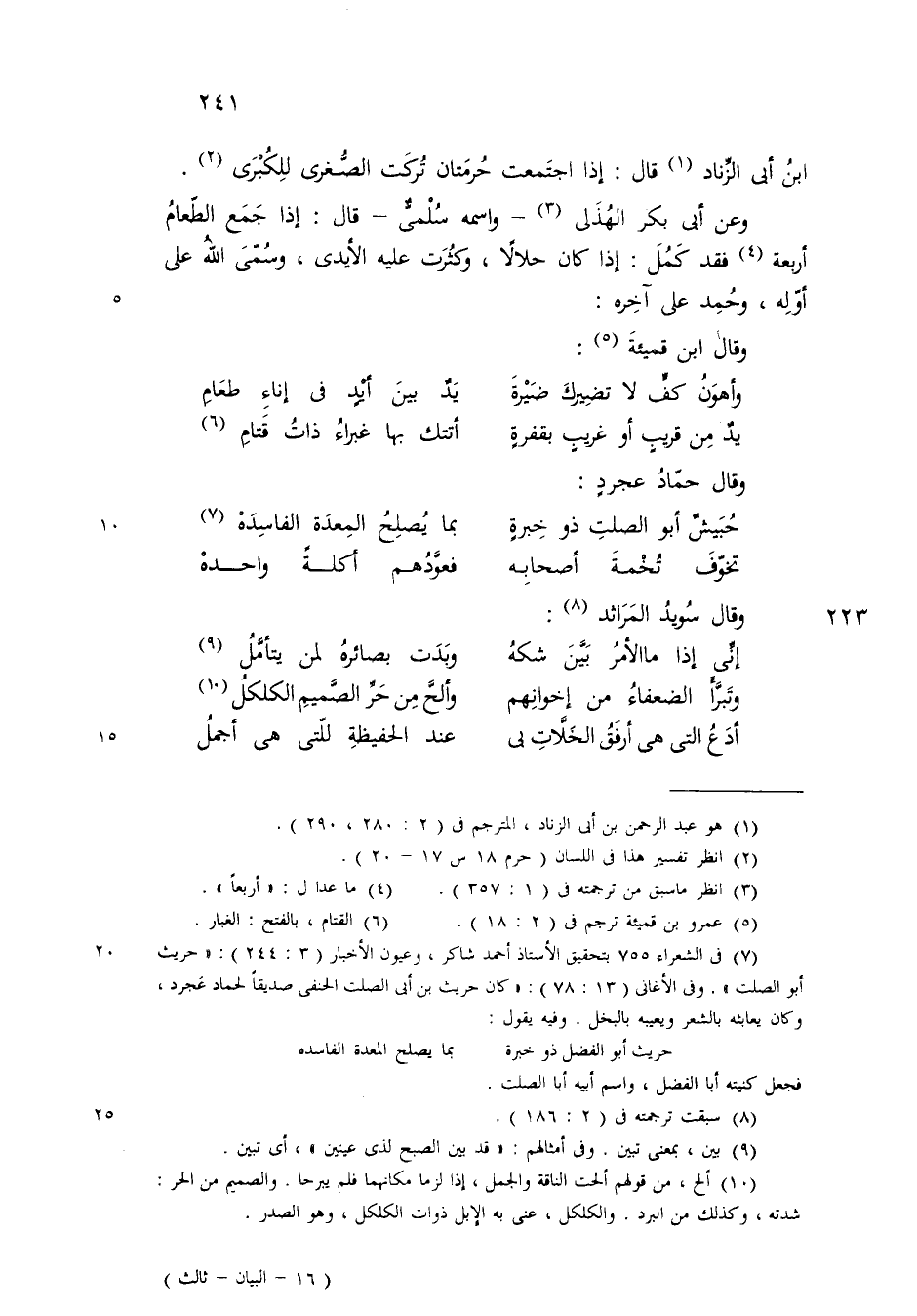 ( حبيش ابو الصلت ذو خبرة ... بما يصلح المعدة الفاسدة )
