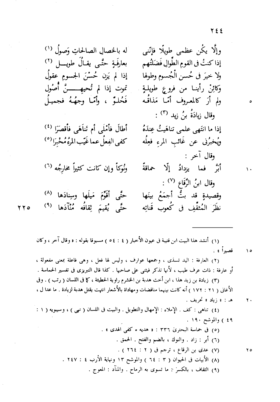 ( اذا كنت في القوم الطوال فضلتهم ... بعارفة حتى يقال طويل )