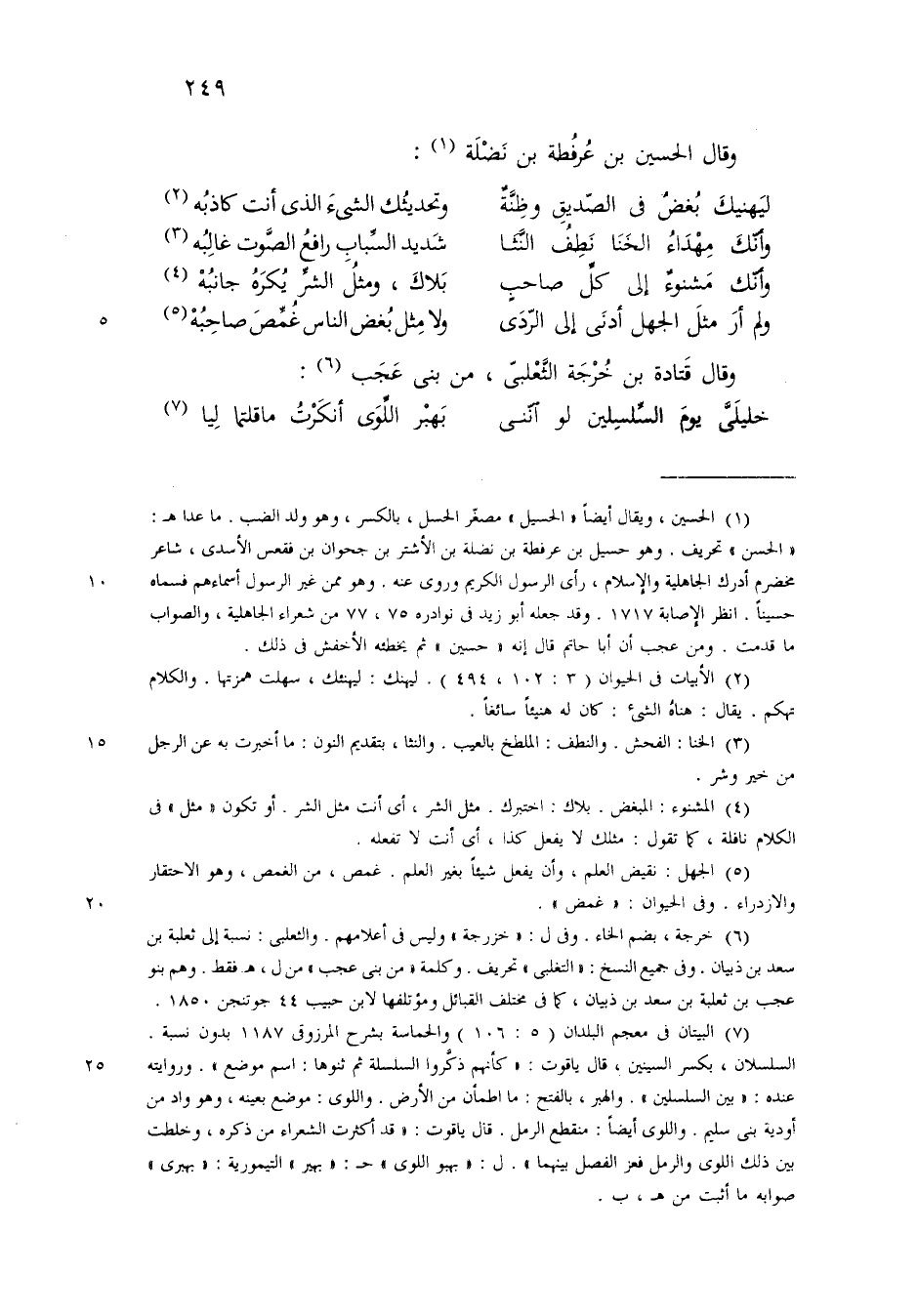 ( خليلي يوم السلسلين لو أنني ... بهيرا اللوا أنكرت ما قلتما ليا )@