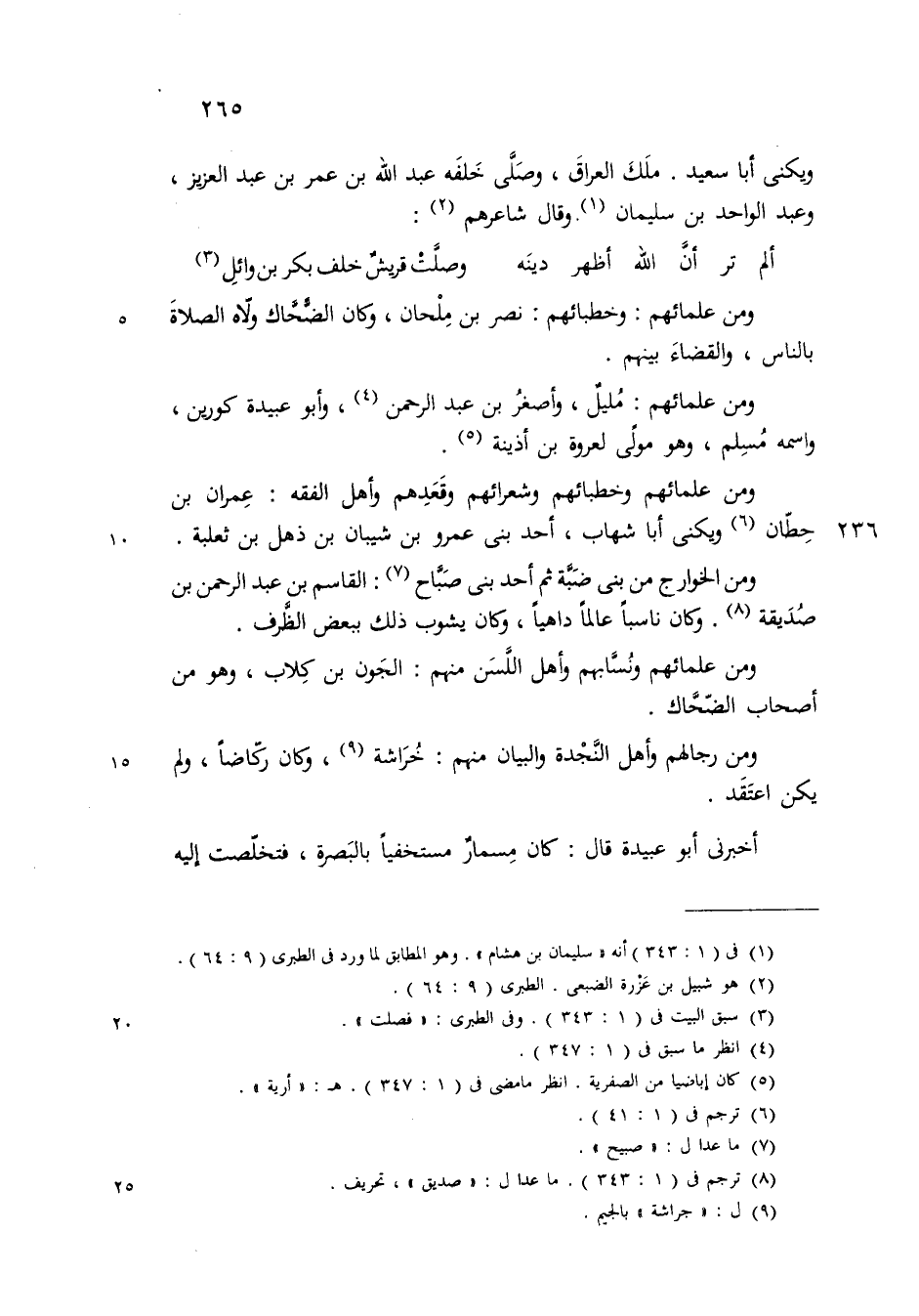 ومن علمائهم وخطبائهم وشعرائهم وقعدهم وأهل الفقه منهم عمران بن حطان ويكنى أبا شهاب أحد بني عمرو بن شيبان بن ذهل بن ثعلبة