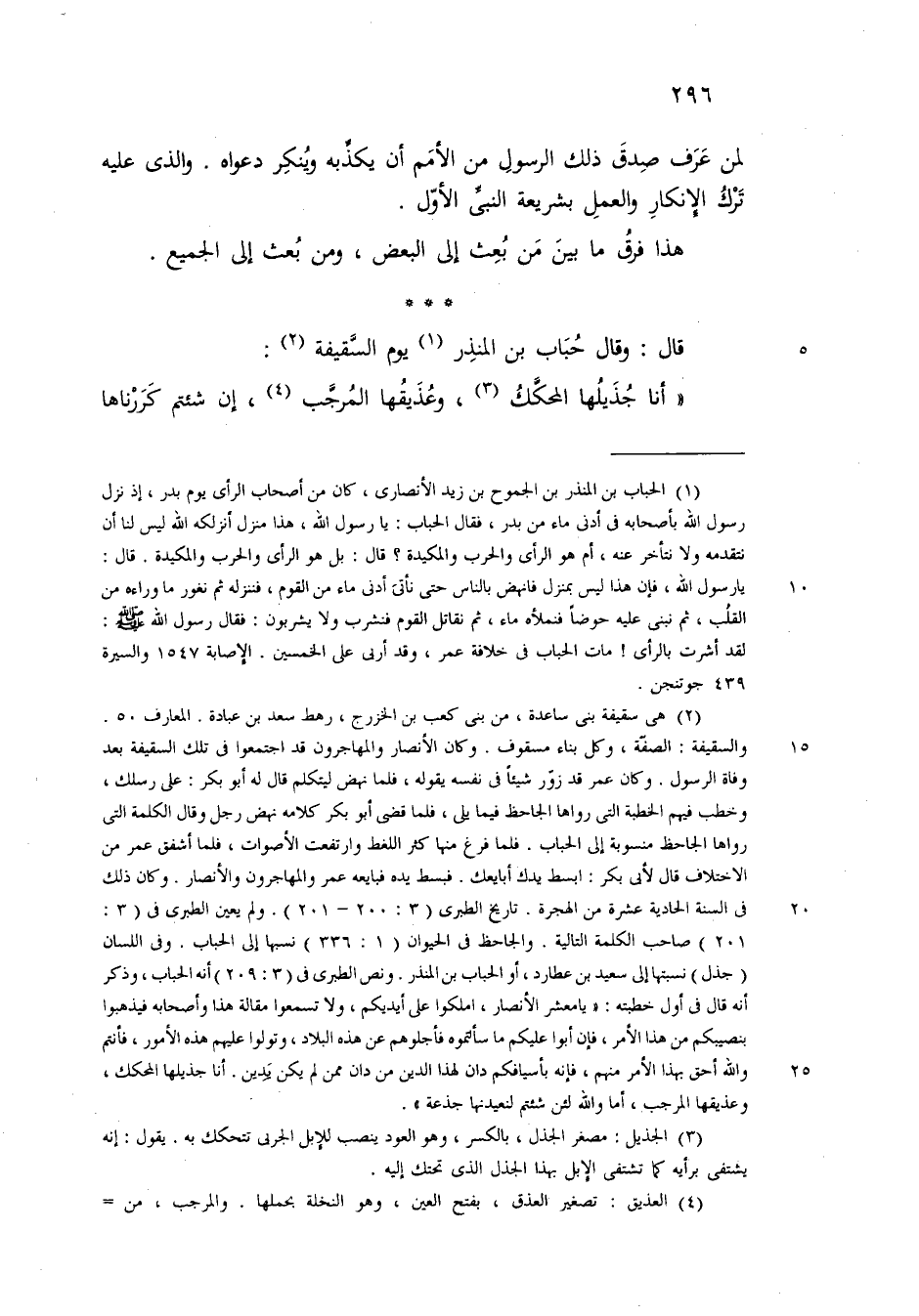 و قال قال حباب بن المنذر يوم السقيفة انا جذيلها المحكك وعذيقها المرجب ان شئتم كررناها@