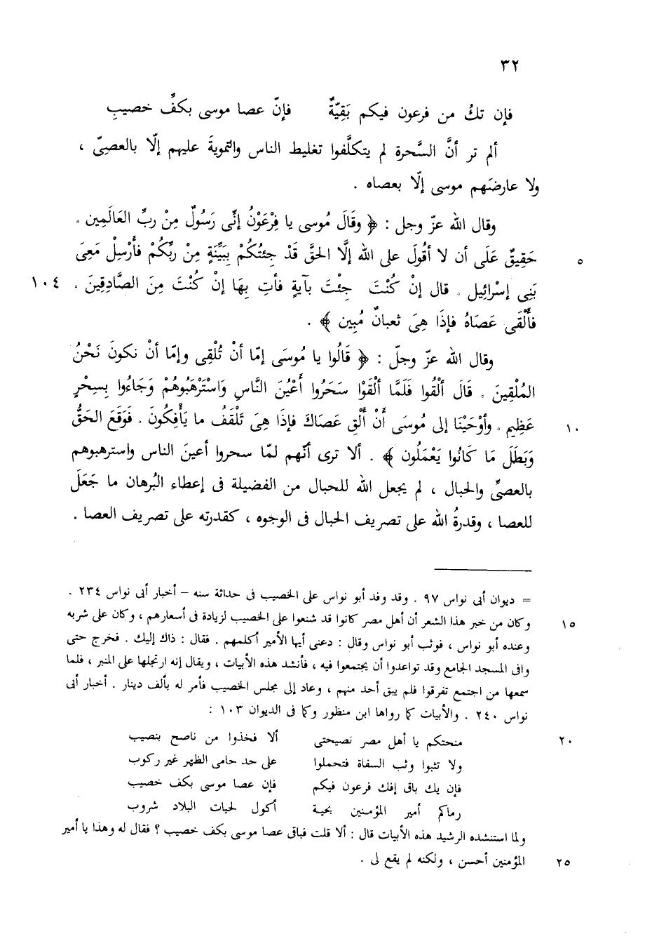( فان تك من فرعون فيكم بقية ... فان عصا موسى بكف خصيب )