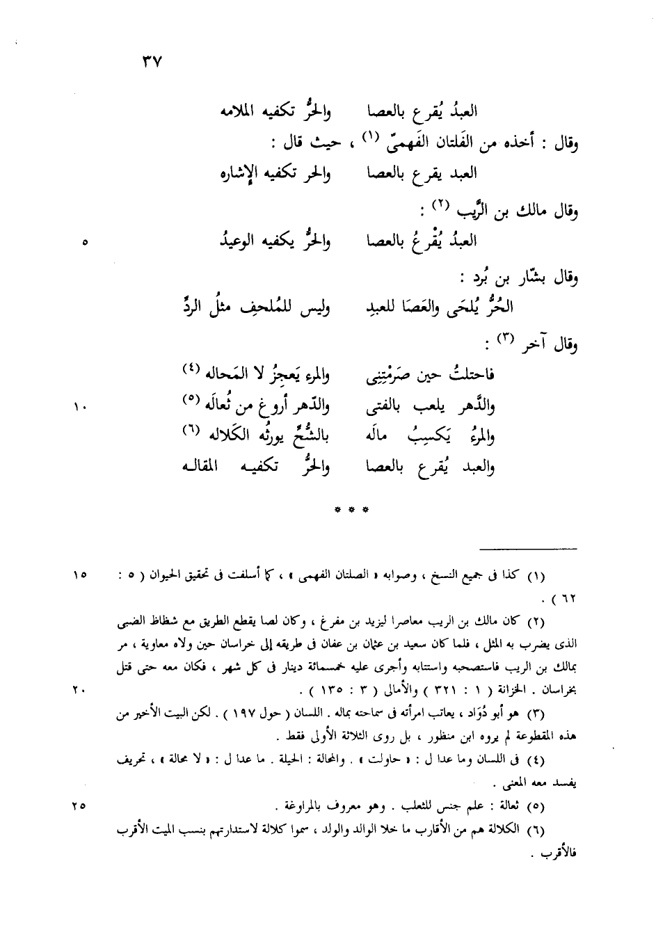 ( والعبد يقرع بالعصا ... والحر تكفيه المقاله )@