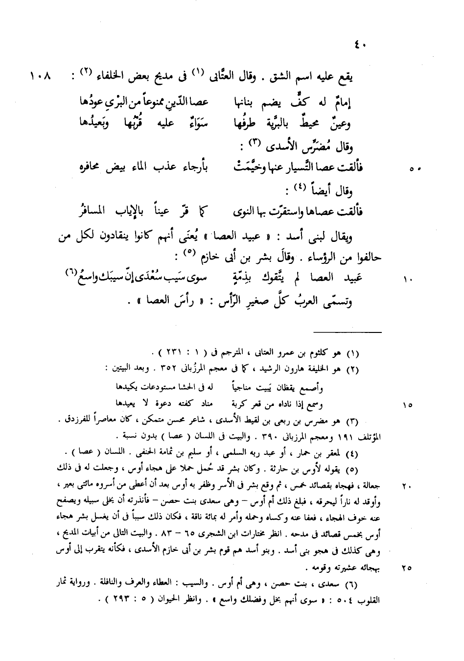 ( إمام له كف تضم بنانها ... عصا الدين ممنوع من البري عودها )