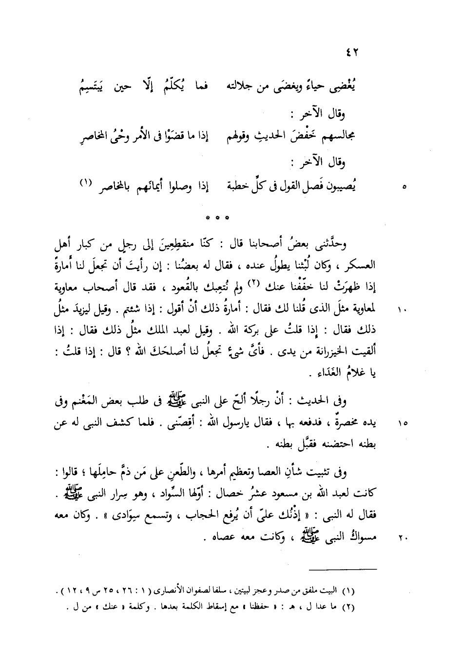 ( مجالسهم خفض الحديث وقولهم ... اذا ما قضوا في الأمر وحي المخاصر )