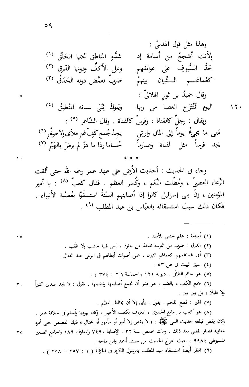 ( ولأنت أشجع من أسامة اذ ... شدوا المناطق فوقها الحلق )