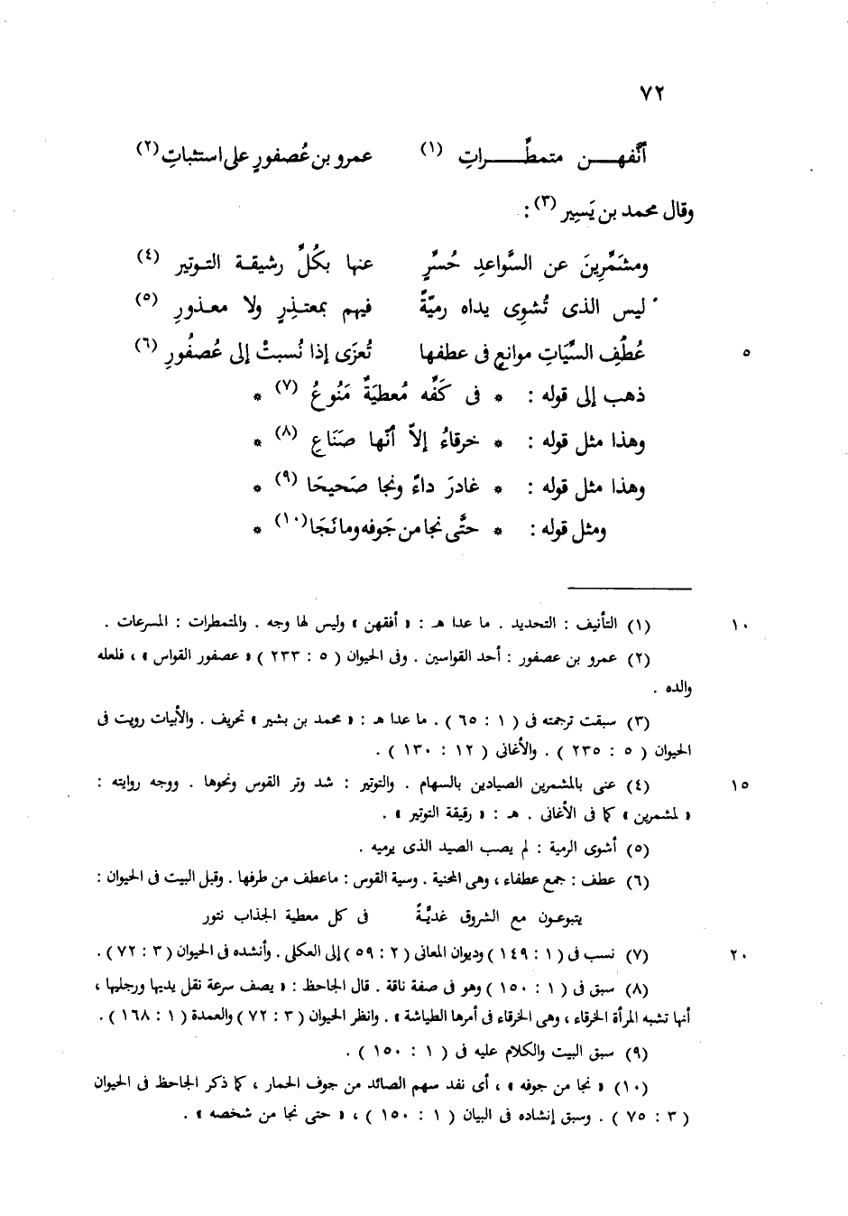 ( عطف السيات موانع في عطفها ... تعزى اذا نسبت الىعصفور )
