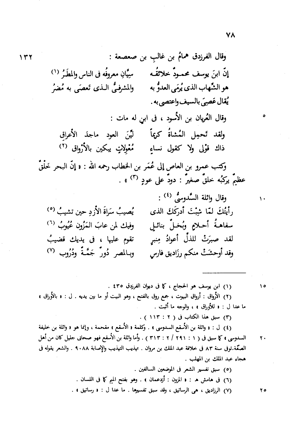 ( ولقد تحمل المشاة كريما ... لين العود ماجد الاعراق )