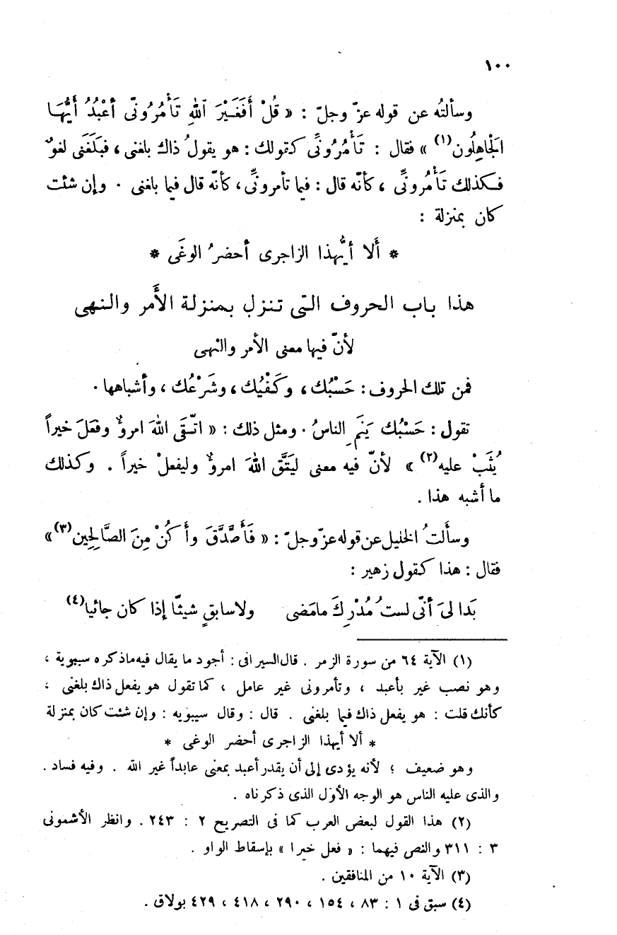 وسألت الخليل عن قوله عز وجل: " فأصَّدق وأكن من الصالحين " فقال: هذا كقول زهير: