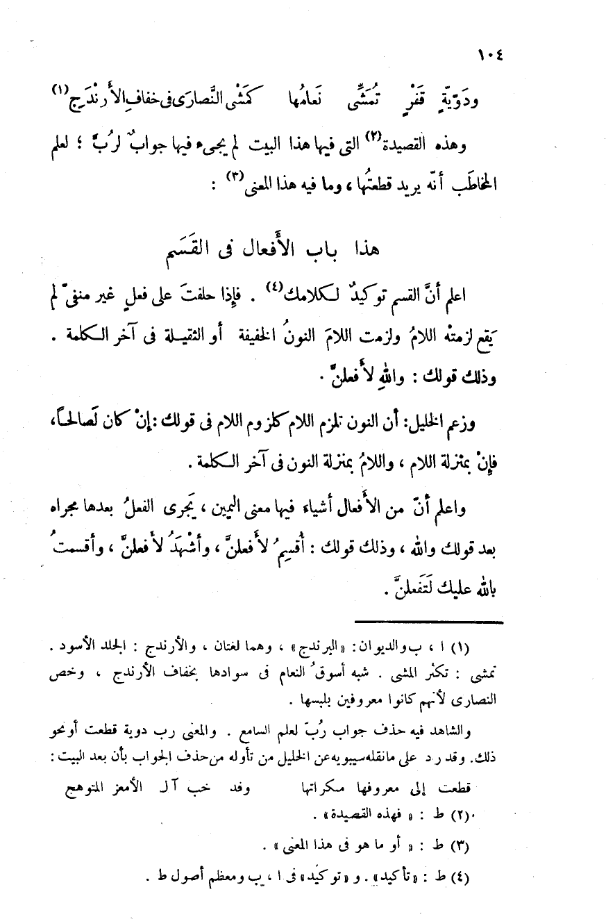 ودوّيّةٍ قفرٍ تمشِّى نَعامُها ... كمَشْي النَّصارى في خفافِ الأَرنْدَجِ