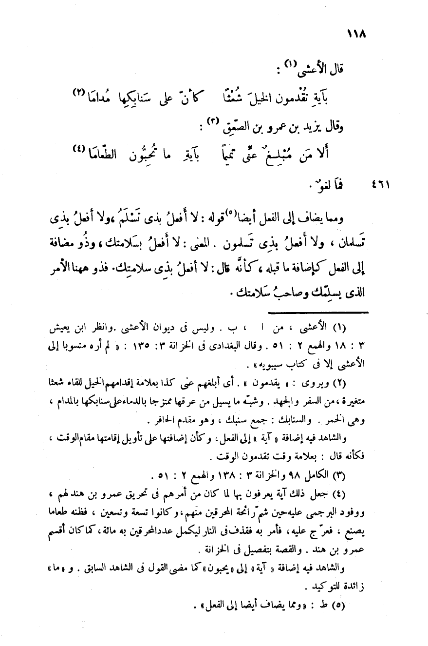 ومما يضاف إلى الفعل قوله: لا أفعل بذي تسلم، ولا أفعل بذي تسلمان، ولا أفعل بذي تسلمون، المعنى: لا أفعل بسلامتك، وذو مضافة إلى الفعل كإضافة ما قبله، كأنَّه قال: لا أفعل بذي سلامتك. فذو ههنا الأمر الذي بسلّمك وصاحب سلامتك.