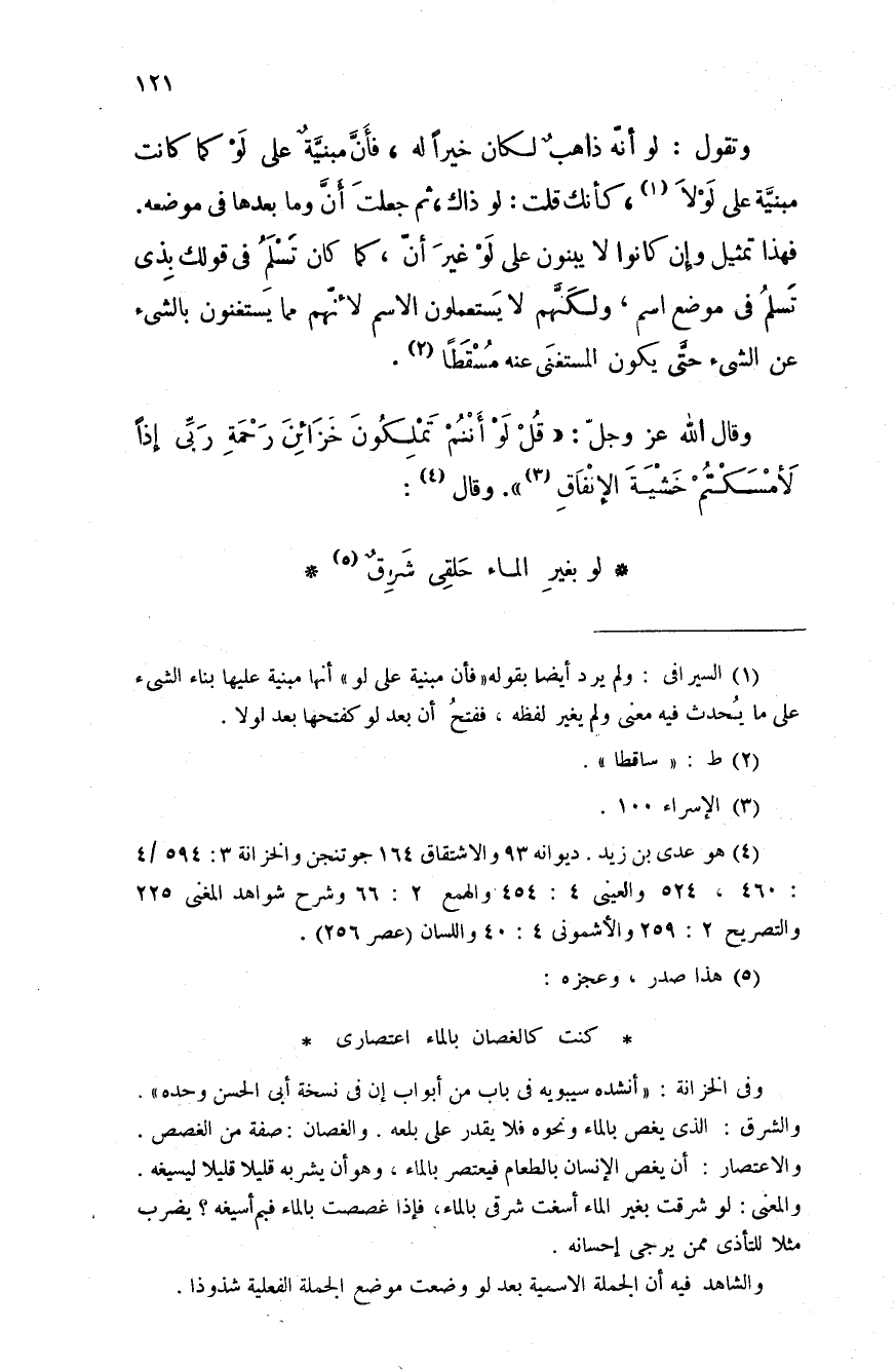 وتقول: لو أنه ذاهبٌ لكان خيراً له، فأنَّ مبنيَّة على لو كما كانت مبنيَّة على لولا، كأنك قلت: لو ذاك، ثم جعلت أنَّ وما بعدها في موضعه فهذا تمثيل وإن كانوا لا يبنون على لو غير أن، كما كان تسلم في قولك بذي تسلم في موضع اسم، ولكنَّهم لا يستعملون الاسم لأنّهم مما مستغنون بالشيء عن الشيء حتَّى يكون المستغنى عنه مسقطاً.