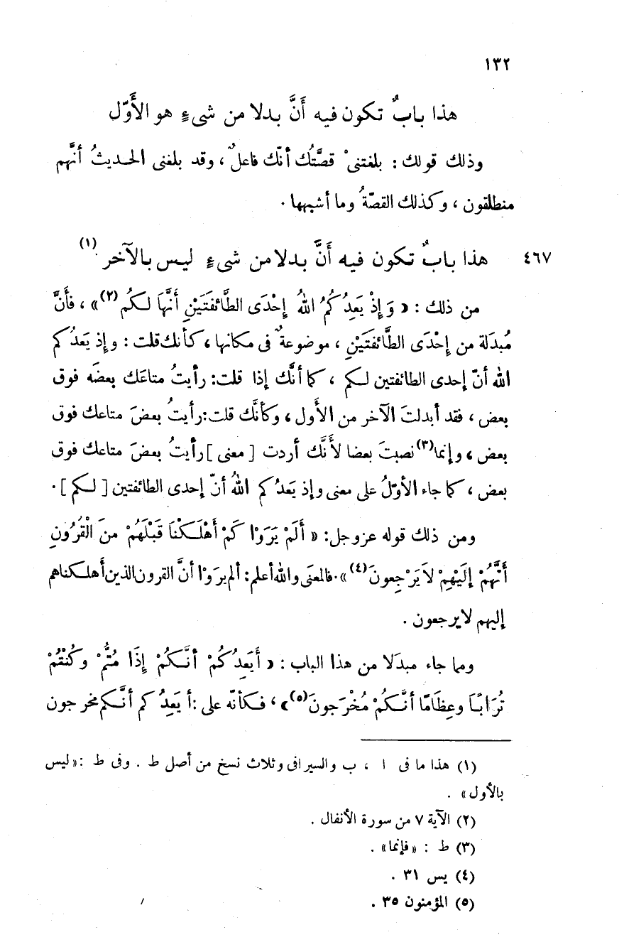 ومما جاء مبدلاً من هذا الباب: " أيعدكم أنَّكم إذا متُّم وكنتم ترابا وعظاما أنَّكم مخرجون "، فكأنه على: أيعدكم أنَّكم مخرجون