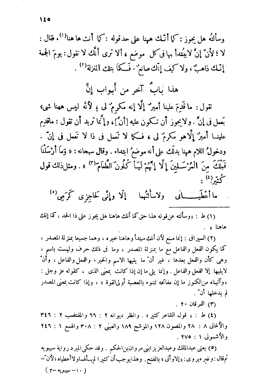 ودخول اللام ههنا يدلّك على أنه موضع ابتداء. وقال سبحانه: " وما أرسلنا قبلك من المرسلين إَّلا إنَّهم ليأكلون الطَّعام ". ومثل ذلك قول كثير: