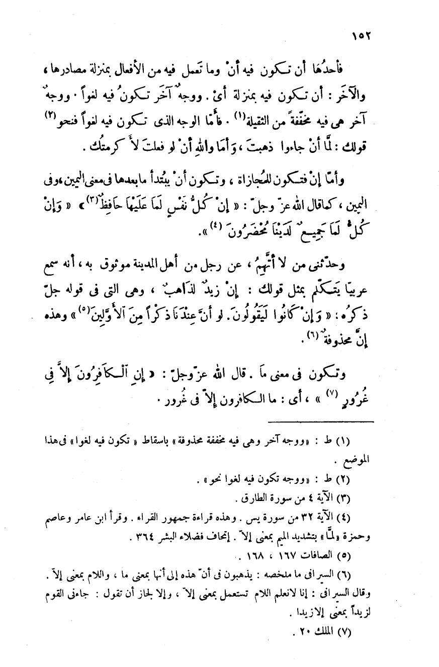 وحدثني من لا أتهم، عن رجل من أهل المدينة موثوق به، أنه سمع عربياً يتكلم بمثل قولك: إن زيدٌ لذاهبٌ، وهي التي في قوله جل ذكره: " وإن كانوا ليقولون. لو أنَّ عندنا ذكرا من الأوَّلين " وهذه إنَّ محذوفةٌ.