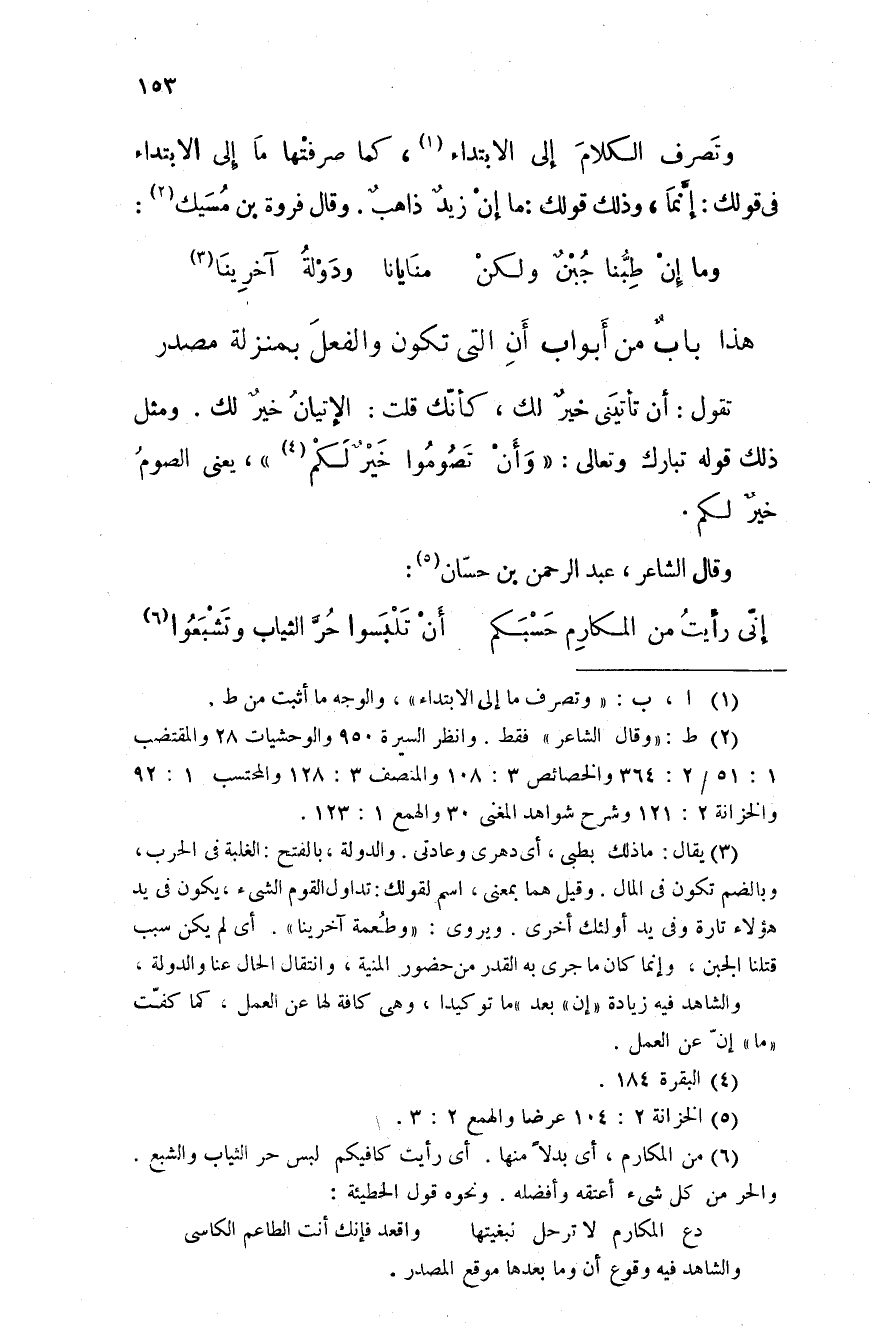 وتصرف الكلام إلى الابتداء، كما صرفتها ما إلى الابتداء في قولك: إنمَّا، وذلك قولك: ما إن زيدٌ ذاهبٌ. وقال فروة بن مسيك: