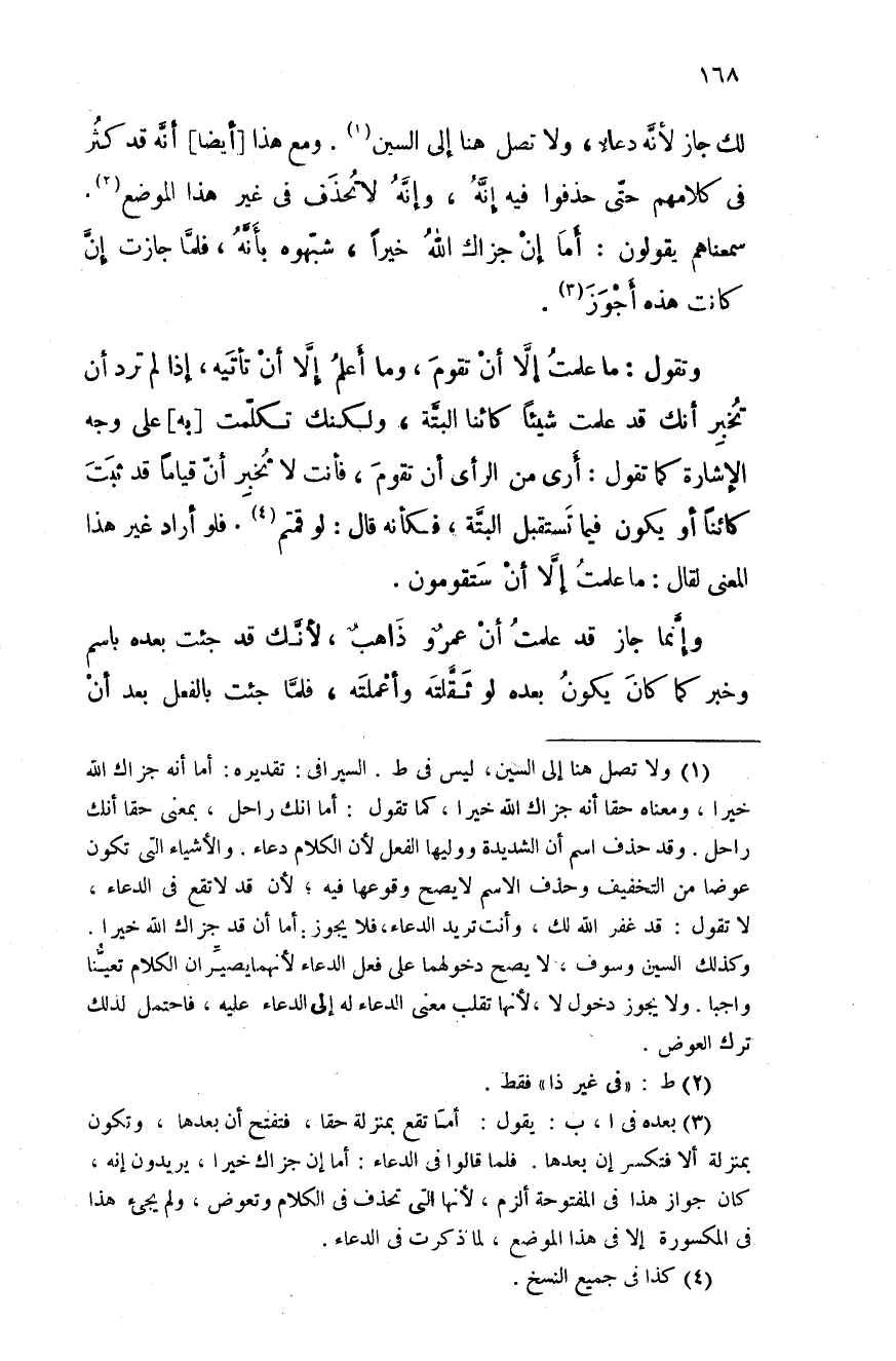 لك جاز لأنه دعاءٌ، ولا تصل هنا إلى السين. ومع هذا أيضاً أنَّه قد كثر في كلامهم حتى حذفوا فيه إنَّه، وإنَّه لا تحذف في غير هذا الموضع. سمعناهم يقولون: أما إن جزاك الله خيراً، شبهوه بأنَّه، فلمَّا جازت إنَّ كانت هذه أجوز.