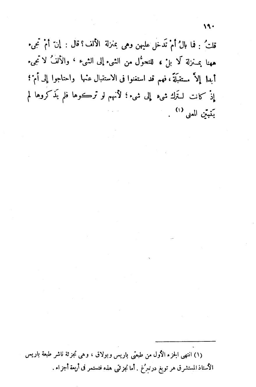قلت: فما بال أم تدخل عليهن وهي بمنزلة الألف؟ قال: إنّ أم تجيء ههنا بمنزلة لا بل، للتحوَّل من الشيء إلى الشيء، والألف لا تجيء أبدا إلاَّ مستقبلة، فهم قد استغنوا في الاستقبال عنها واحتاجوا إلى أم؛ إذ كانت لترك شيء إلى شيء؛ لأنهم لو تركوها فلم يذكروها لم يتبيّن المعنى.