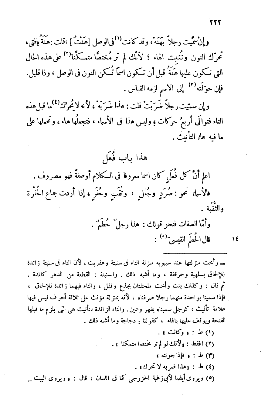 هذا باب فعل اعلم أنَّ كل فعلٍ كان اسماً معروفاً في الكلام أو صفةً فهو مصروف. فالأسماء نحو: صردٍ وجعلٍ، وثقبٍ وحفرٍ، إذا أردت جماع الحفرة والثقُّبة.