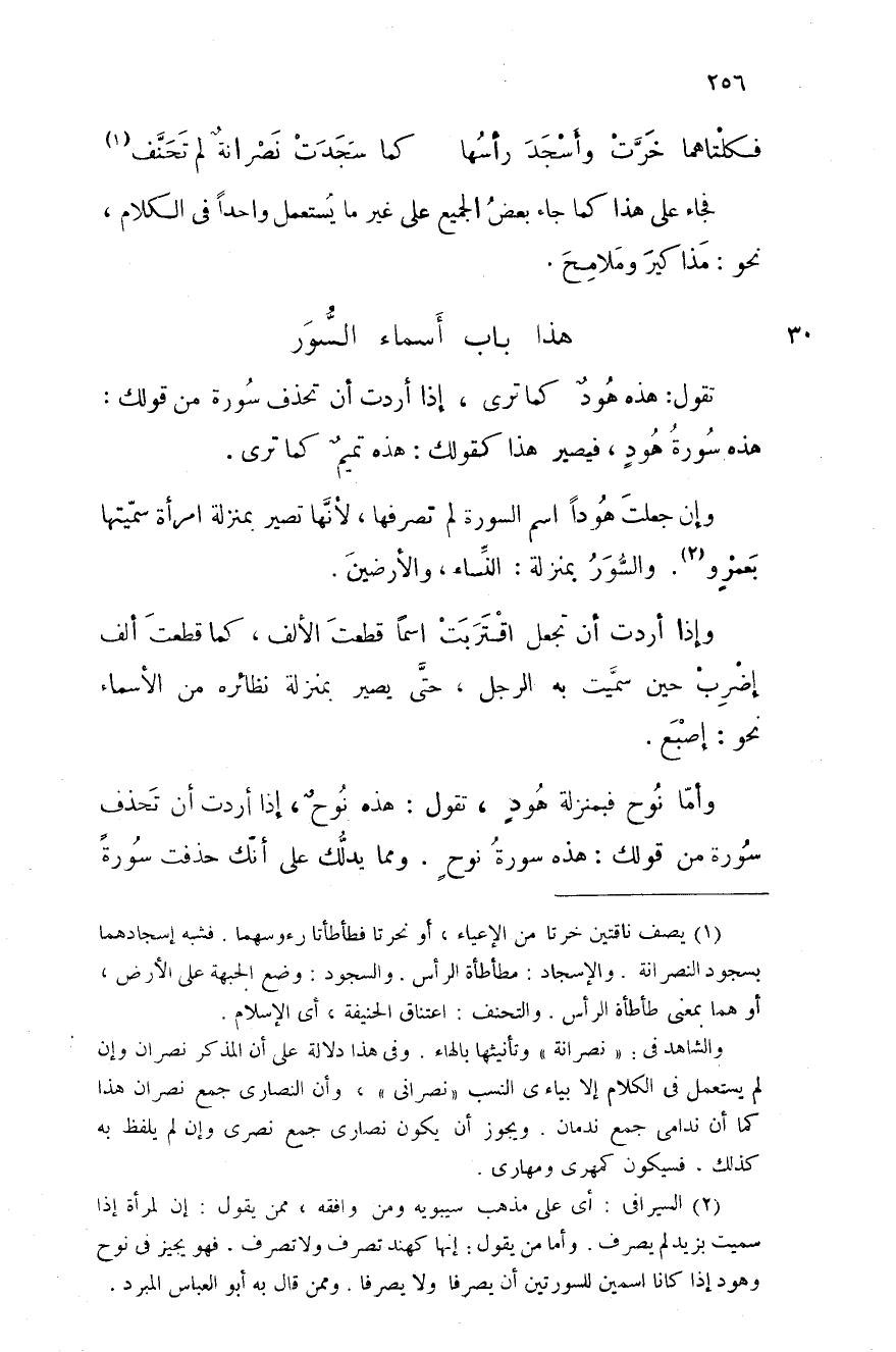 هذا باب أسماء السُّور تقول: هذه هودٌ كما ترى، إذا أردت أن تحذف سورة من قولك: هذه سورة هود، فيصير هكذا كقولك هذه تميمٌ كما ترى.