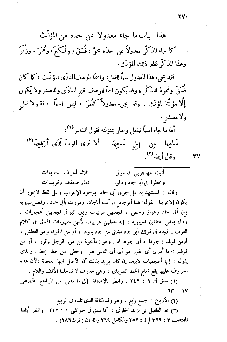 باب ما جاء معدولا عن حده من المؤنث كما جاء المذكر معدولا عن حده نحو: فسق، ولكع، وعمر، وزفر وهذا المذكر نظير ذلك المؤنث.