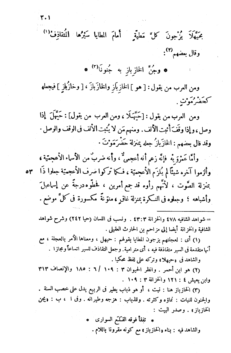 ومن العرب من يقول: هو الخازباز والخازباز، وخازبازٍ فيجعلها كحضرموتٍ.
