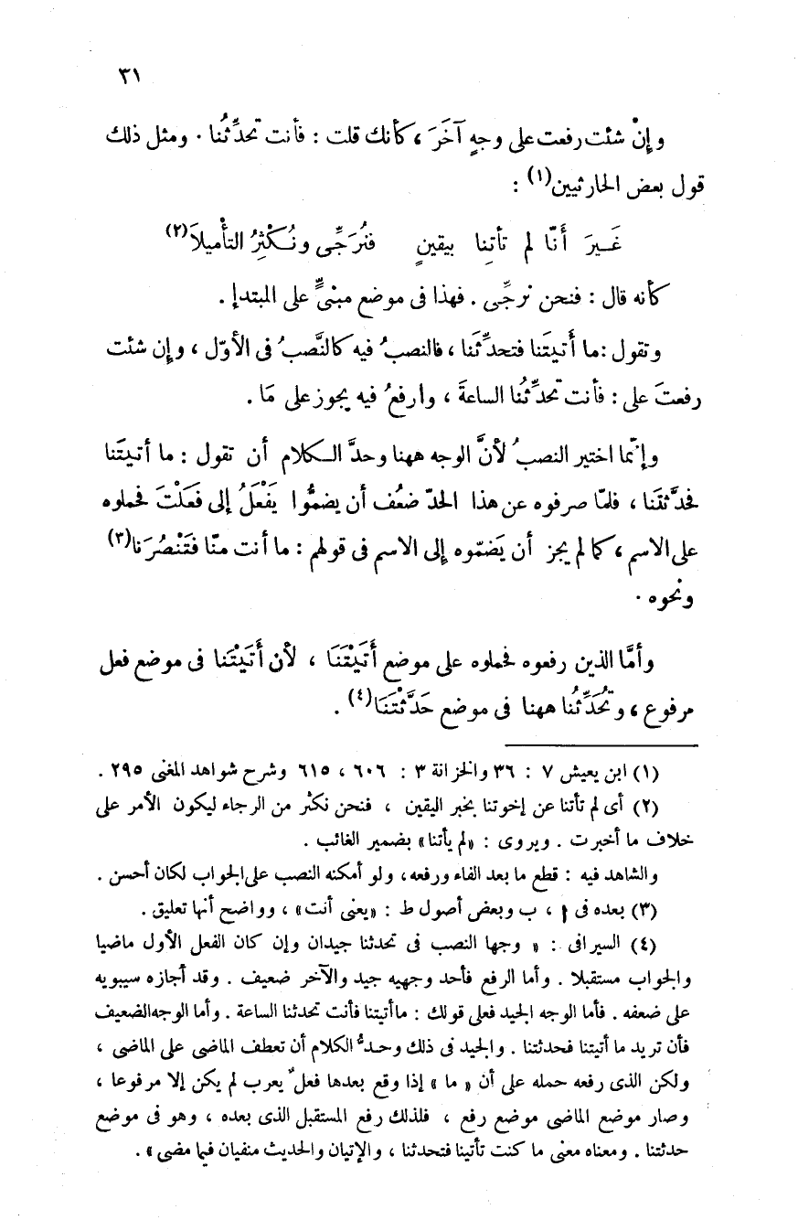 وإن شئت رفعت على وجهٍ آخر، كأنك قلت: فأنت تحدثنا. ومثل ذلك قول بعض الحارثيين: