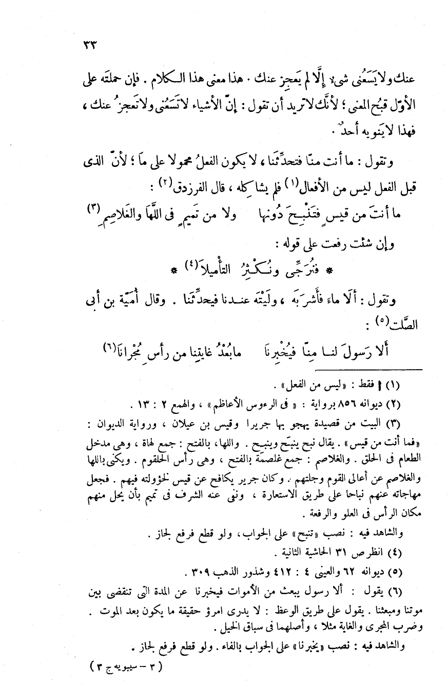 عنك ولا يسعني شئ إلا لم يعجز عنك. هذا معنى هذا الكلام. فإن حملته على الأول قبح المعنى؛ لأنك لا تريد أن تقول: إن الأشياء لا تسعني ولا تعجز عنك، فهذا لا ينويه أحدٌ.