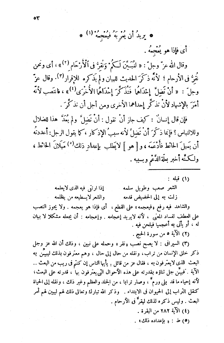 يريدُ أن يُعْرِبَهُ فيُعْجِمُهْ