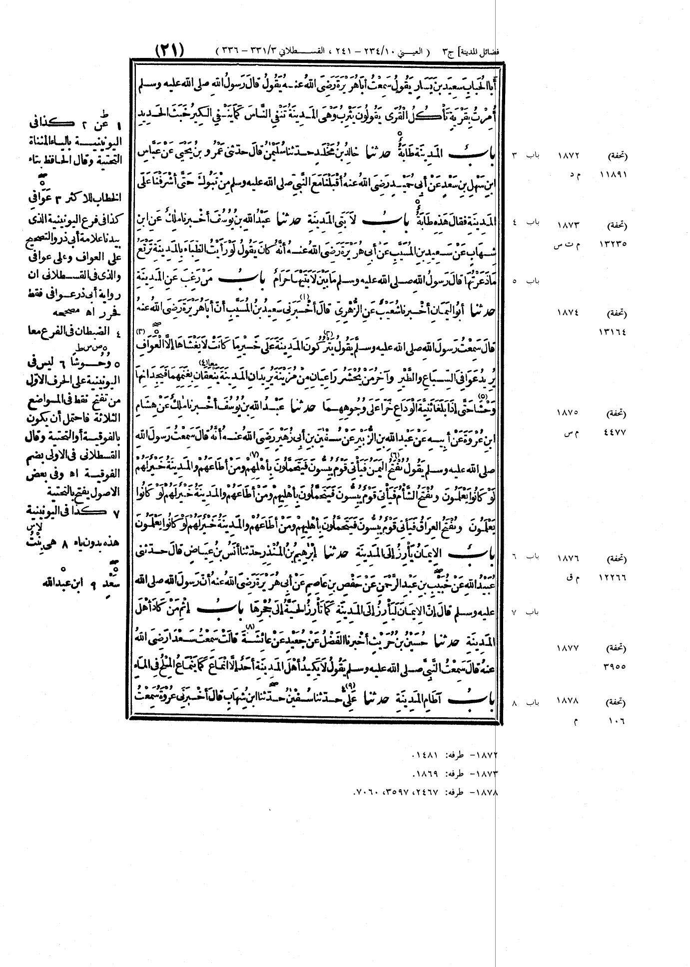 ١٨٧٦ - حَدَّثَنَا إِبْرَاهِيمُ بْنُ المُنْذِرِ، حَدَّثَنَا أَنَسُ بْنُ عِيَاضٍ، قَالَ: حَدَّثَنِي عُبَيْدُ اللَّهِ، عَنْ خُبَيْبِ بْنِ عَبْدِ الرَّحْمَنِ، عَنْ حَفْصِ بْنِ عَاصِمٍ، عَنْ أَبِي هُرَيْرَةَ رَضِيَ اللَّهُ عَنْهُ، أَنَّ رَسُولَ اللَّهِ صَلَّى اللهُ عَلَيْهِ وَسَلَّمَ، قَالَ: «إِنَّ الإِيمَانَ لَيَأْرِزُ إِلَى المَدِينَةِ كَمَا تَأْرِزُ الحَيَّةُ إِلَى جُحْرِهَا»