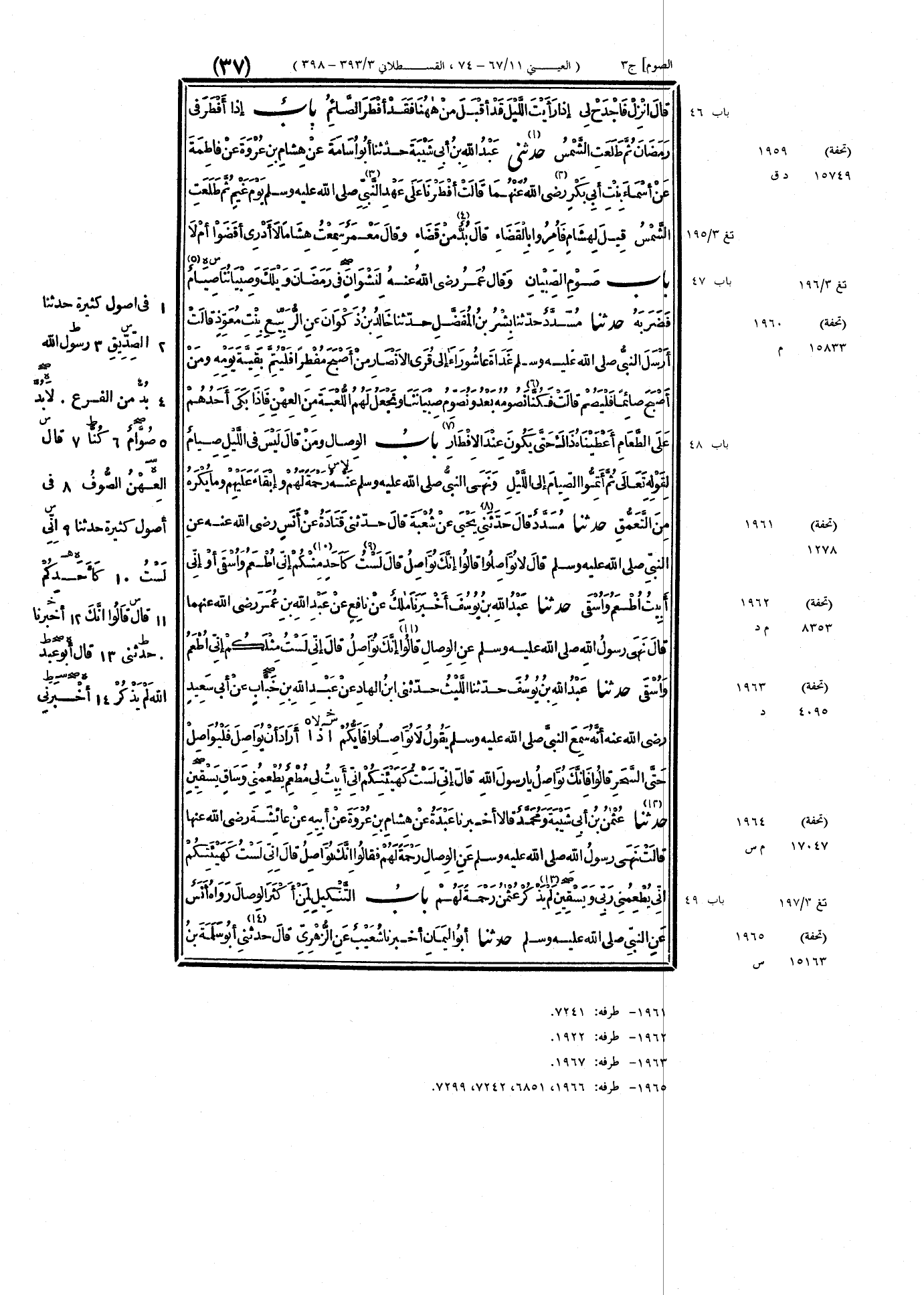 ١٩٦٤ - حَدَّثَنَا عُثْمَانُ بْنُ أَبِي شَيْبَةَ، وَمُحَمَّدٌ قَالَا: أَخْبَرَنَا عَبْدَةُ، عَنْ هِشَامِ بْنِ عُرْوَةَ، عَنْ أَبِيهِ، عَنْ عَائِشَةَ رَضِيَ اللَّهُ عَنْهَا، قَالَتْ: «نَهَى رَسُولُ اللَّهِ صَلَّى اللهُ عَلَيْهِ وَسَلَّمَ عَنِ الوِصَالِ رَحْمَةً لَهُمْ»، فَقَالُوا: إِنَّكَ تُوَاصِلُ، قَالَ: «إِنِّي لَسْتُ كَهَيْئَتِكُمْ إِنِّي يُطْعِمُنِي رَبِّي وَيَسْقِينِ»، قَالَ أَبُو عَبْدِ اللَّهِ: «لَمْ يَذْكُرْ عُثْمَانُ رَحْمَةً لَهُمْ»