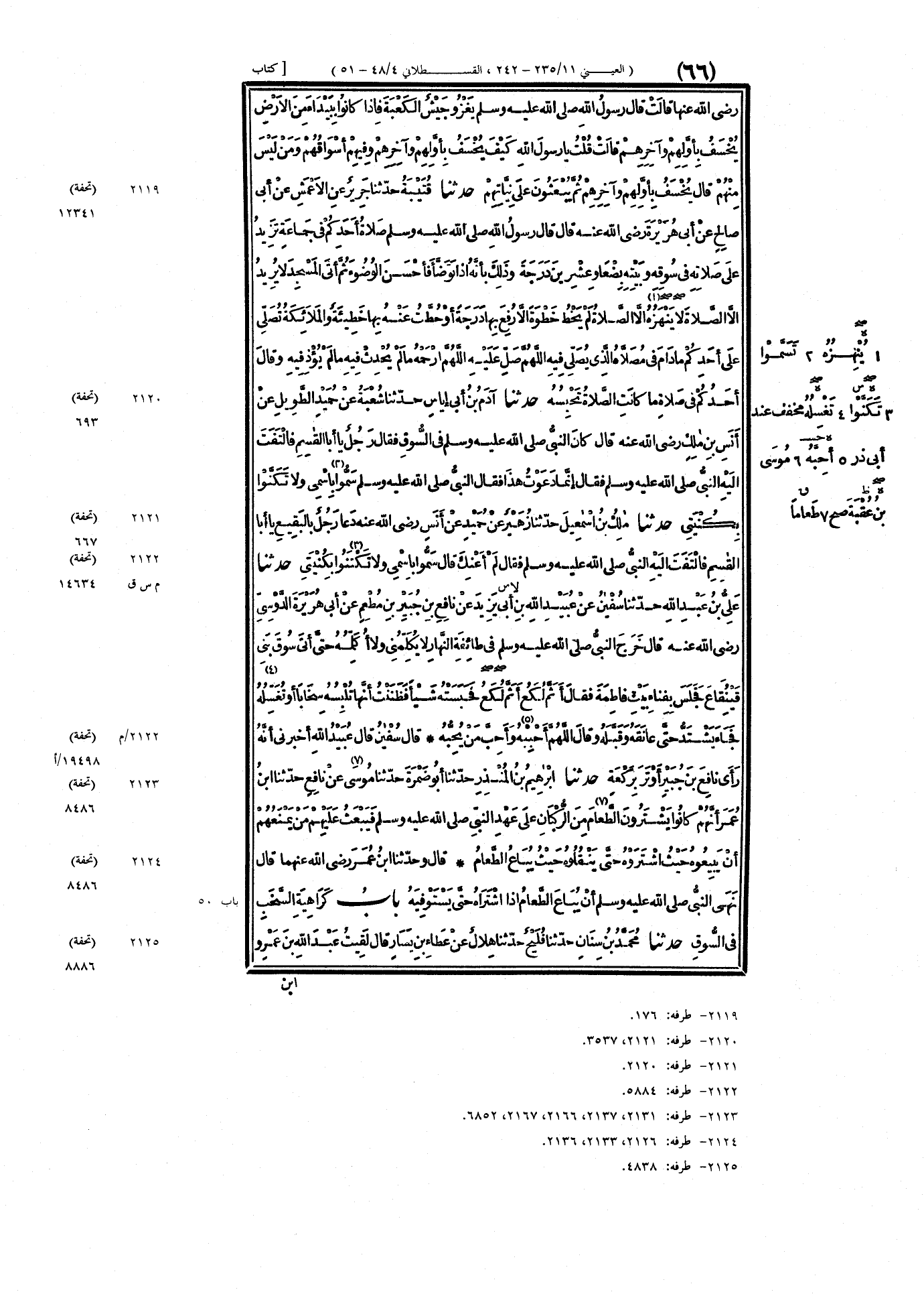 ٢١٢٤ - قَالَ: وَحَدَّثَنَا ابْنُ عُمَرَ رَضِيَ اللَّهُ عَنْهُمَا، قَالَ: نَهَى النَّبِيُّ صَلَّى اللهُ عَلَيْهِ وَسَلَّمَ: أَنْ يُبَاعَ الطَّعَامُ إِذَا اشْتَرَاهُ حَتَّى يَسْتَوْفِيَهُ "