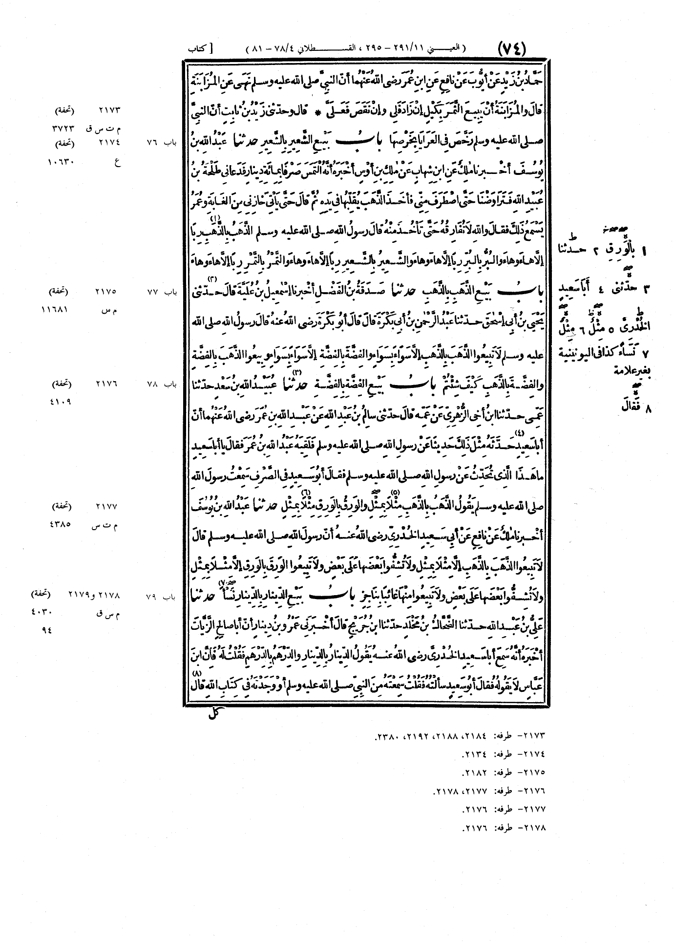 ٢١٧٦ - حَدَّثَنَا عُبَيْدُ اللَّهِ بْنُ سَعْدٍ، حَدَّثَنَا عَمِّي، حَدَّثَنَا ابْنُ أَخِي الزُّهْرِيِّ، عَنْ عَمِّهِ قَالَ: حَدَّثَنِي سَالِمُ بْنُ عَبْدِ اللَّهِ، عَنْ عَبْدِ اللَّهِ بْنِ عُمَرَ رَضِيَ اللَّهُ عَنْهُمَا، أَنَّ أَبَا سَعِيدٍ الخُدْرِيَّ حَدَّثَهُ مِثْلَ ذَلِكَ حَدِيثًا، عَنْ رَسُولِ اللَّهِ صَلَّى اللهُ عَلَيْهِ وَسَلَّمَ: فَلَقِيَهُ عَبْدُ اللَّهِ بْنُ عُمَرَ فَقَالَ: يَا أَبَا سَعِيدٍ مَا هَذَا الَّذِي تُحَدِّثُ عَنْ رَسُولِ اللَّهِ صَلَّى اللهُ عَلَيْهِ وَسَلَّمَ؟ فَقَالَ أَبُو سَعِيدٍ: فِي الصَّرْفِ سَمِعْتُ رَسُولَ اللَّهِ صَلَّى اللهُ عَلَيْهِ وَسَلَّمَ يَقُولُ: «الذَّهَبُ بِالذَّهَبِ مِثْلًا بِمِثْلٍ، وَالوَرِقُ بِالوَرِقِ مِثْلًا بِمِثْلٍ»