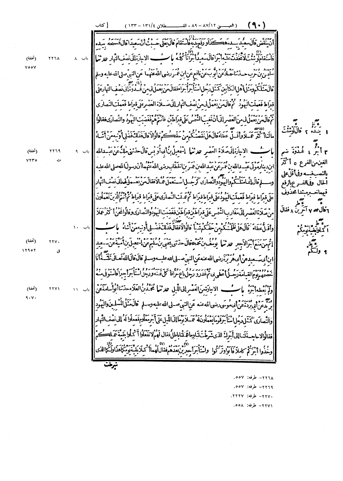 ٢٢٧١ - حَدَّثَنَا مُحَمَّدُ بْنُ العَلَاءِ، حَدَّثَنَا أَبُو أُسَامَةَ، عَنْ بُرَيْدٍ، عَنْ أَبِي بُرْدَةَ، عَنْ أَبِي مُوسَى رَضِيَ اللَّهُ عَنْهُ، عَنِ النَّبِيِّ صَلَّى اللهُ عَلَيْهِ وَسَلَّمَ قَالَ: " مَثَلُ المُسْلِمِينَ، وَاليَهُودِ، وَالنَّصَارَى، كَمَثَلِ رَجُلٍ اسْتَأْجَرَ قَوْمًا يَعْمَلُونَ لَهُ عَمَلًا يَوْمًا إِلَى اللَّيْلِ، عَلَى أَجْرٍ مَعْلُومٍ، فَعَمِلُوا لَهُ إِلَى نِصْفِ النَّهَارِ، فَقَالُوا: لَا حَاجَةَ لَنَا إِلَى أَجْرِكَ الَّذِي شَرَطْتَ لَنَا وَمَا عَمِلْنَا بَاطِلٌ، فَقَالَ لَهُمْ: لَا تَفْعَلُوا، أَكْمِلُوا بَقِيَّةَ عَمَلِكُمْ، وَخُذُوا أَجْرَكُمْ كَامِلًا، فَأَبَوْا، وَتَرَكُوا، وَاسْتَأْجَرَ أَجِيرَيْنِ بَعْدَهُمْ، فَقَالَ لَهُمَا: أَكْمِلَا بَقِيَّةَ يَوْمِكُمَا هَذَا وَلَكُمَا الَّذِي ⦗٩١⦘ شَرَطْتُ لَهُمْ مِنَ الأَجْرِ، فَعَمِلُوا حَتَّى إِذَا كَانَ حِينُ صَلَاةِ العَصْرِ، قَالَا: لَكَ مَا عَمِلْنَا بَاطِلٌ، وَلَكَ الأَجْرُ الَّذِي جَعَلْتَ لَنَا فِيهِ، فَقَالَ لَهُمَا: أَكْمِلَا بَقِيَّةَ عَمَلِكُمَا مَا بَقِيَ مِنَ النَّهَارِ شَيْءٌ يَسِيرٌ، فَأَبَيَا، وَاسْتَأْجَرَ قَوْمًا أَنْ يَعْمَلُوا لَهُ بَقِيَّةَ يَوْمِهِمْ، فَعَمِلُوا بَقِيَّةَ يَوْمِهِمْ حَتَّى غَابَتِ الشَّمْسُ، وَاسْتَكْمَلُوا أَجْرَ الفَرِيقَيْنِ كِلَيْهِمَا، فَذَلِكَ مَثَلُهُمْ، وَمَثَلُ مَا قَبِلُوا مِنْ هَذَا النُّورِ "