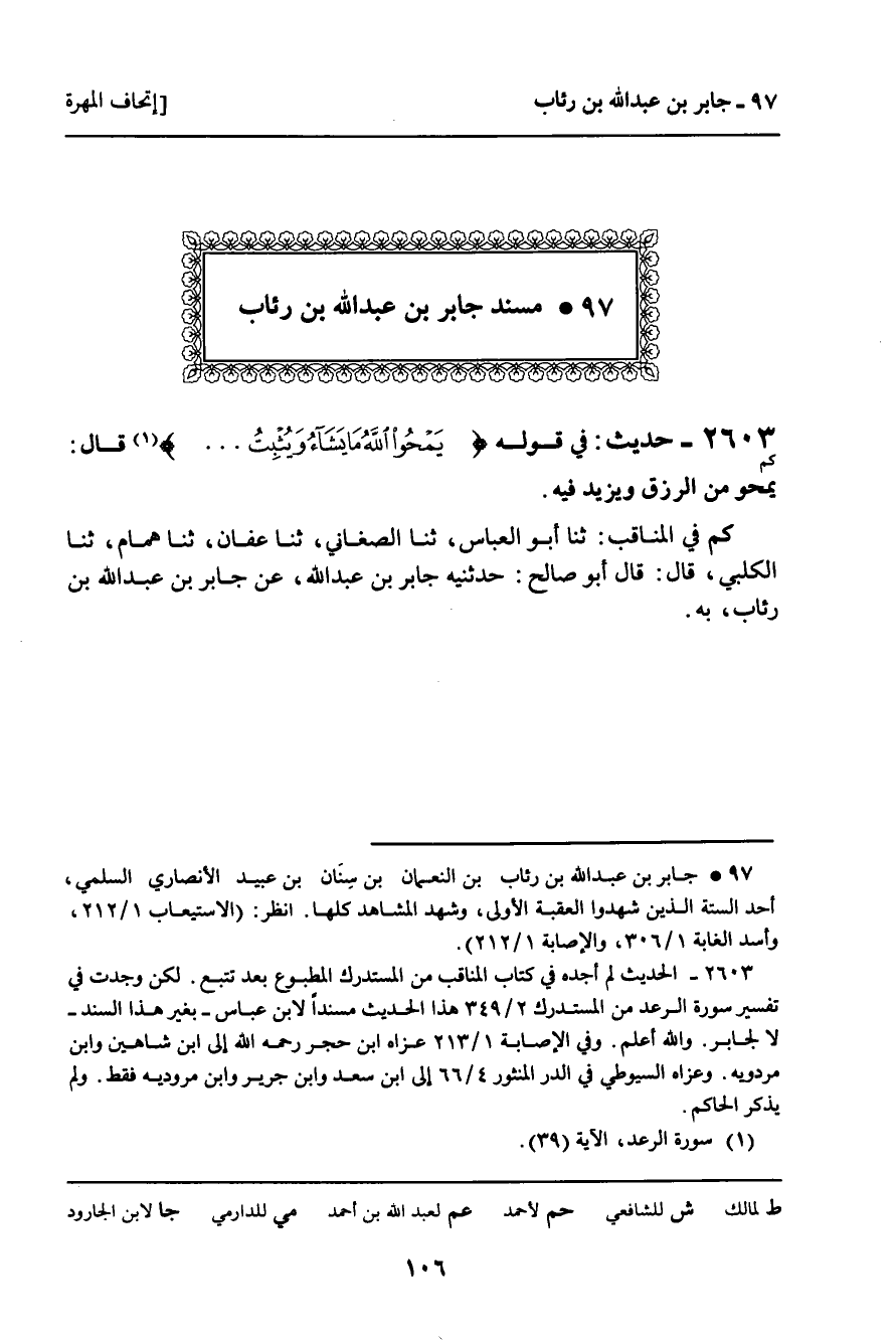 97 ـ مُسْنَدُ جَابِرِ بْنِ عَبْدِ اللَّهِ بْنِ رِئَابٍ