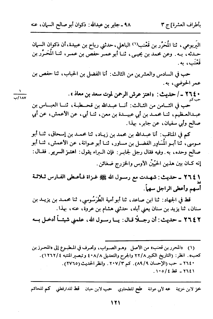 2640 - حَدِيثُ (حب كم) : " اهْتَزَّ عَرْشُ الرَّحْمَنِ لِمَوْتِ سَعْدِ بْنِ مُعَاذٍ ".