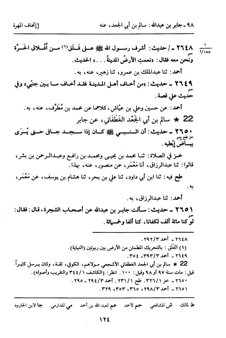 ـ سَالِمُ بْنُ أَبِي الْجَعْدِ الْغَطَفَانِيُّ، عَنْ جَابِرٍ