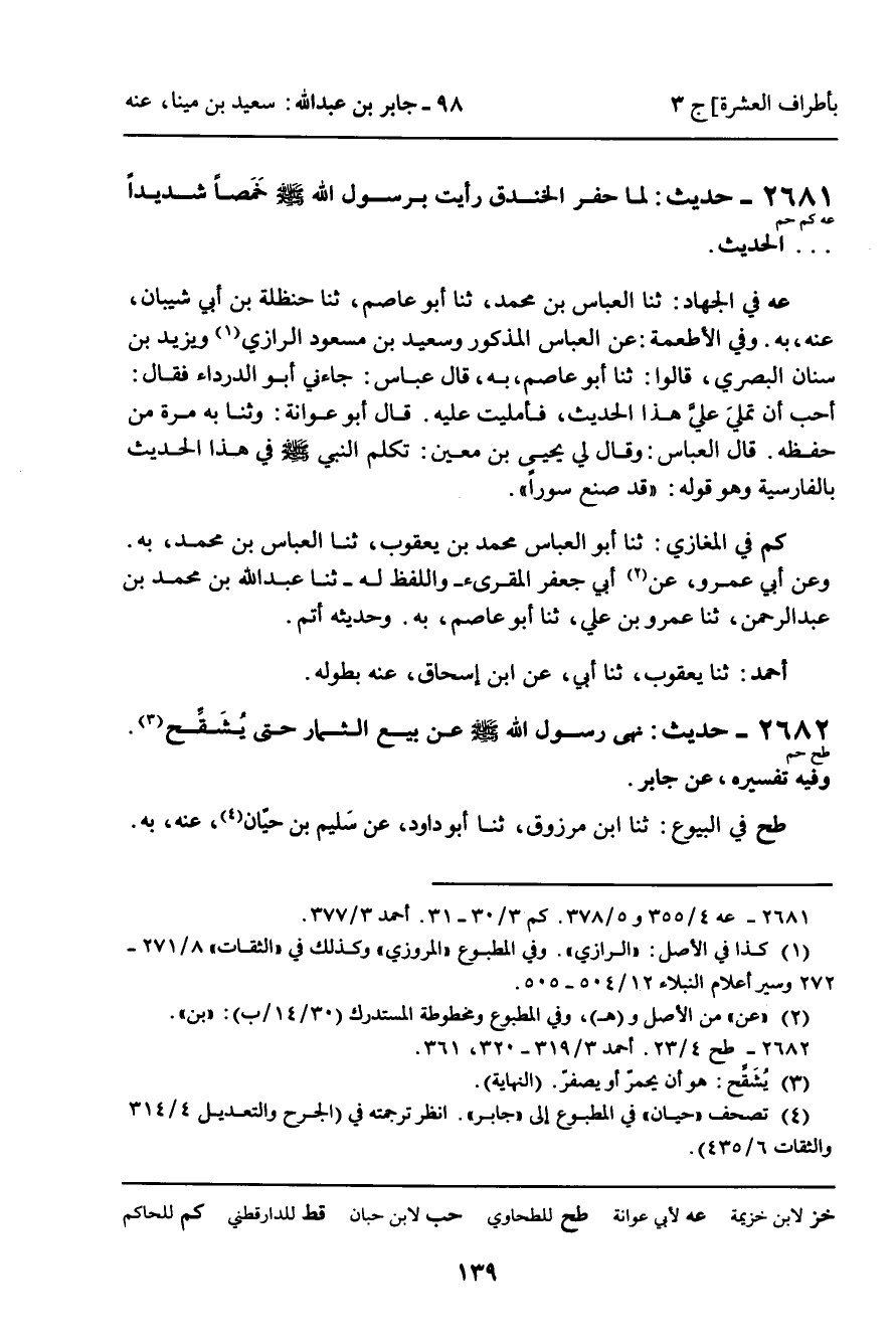 2681 - حَدِيثُ (عه كم حم) : لَمَّا حُفِرَ الْخَنْدَقُ رَأَيْتُ بِرَسُولِ اللَّهِ صَلَّى اللَّهُ عَلَيْهِ وَسَلَّمَ خَمَصًا شَدِيدًا. . . الْحَدِيثَ.