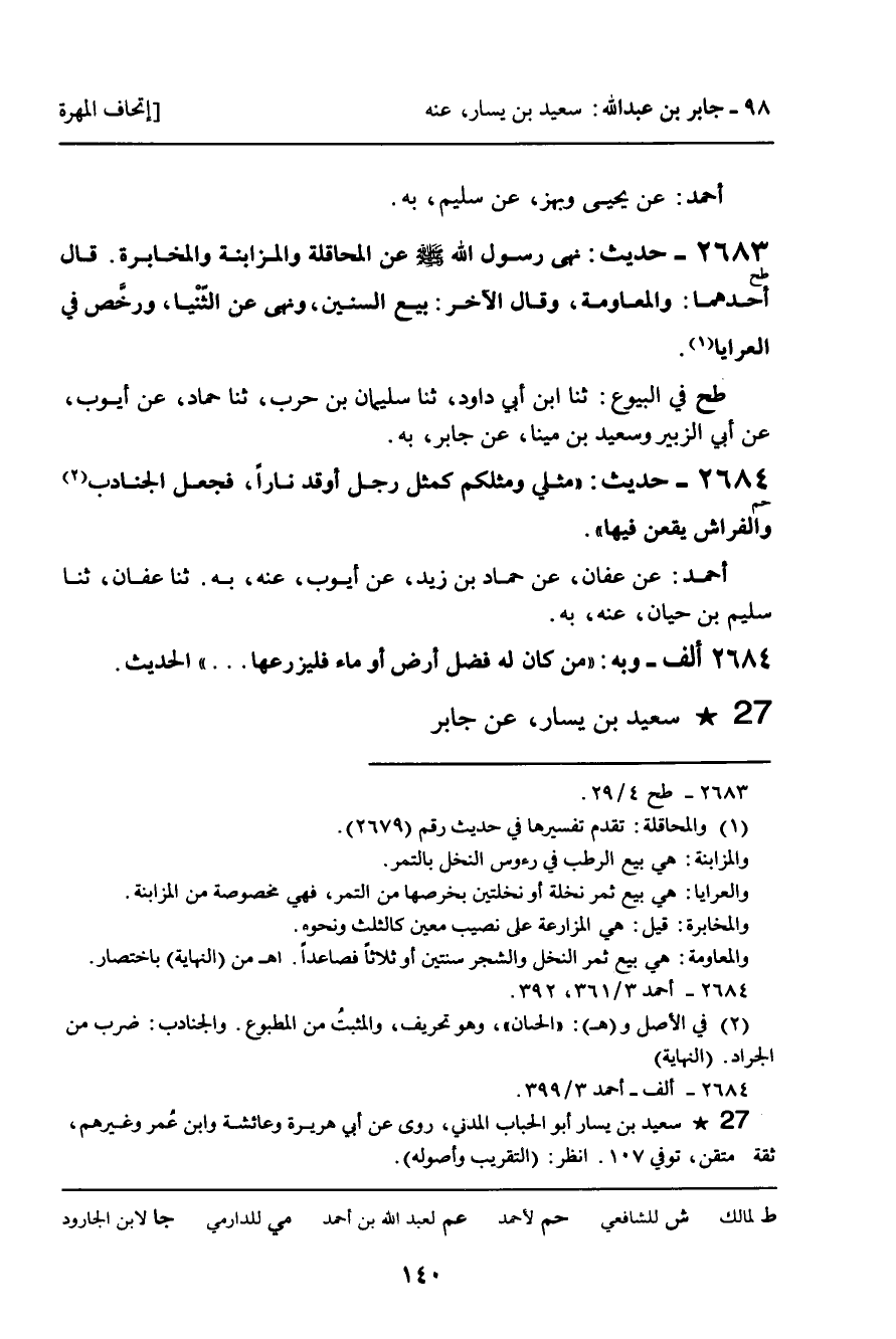 (طح) فِي الْبُيُوعِ: ثنا ابْنُ أَبِي دَاوُدَ، ثنا سُلَيْمَانُ بْنُ حَرْبٍ، ثنا حَمَّادٌ، عَنْ أَيُّوبَ، عَنْ أَبِي الزُّبَيْرِ، وَسَعِيدِ بْنِ مِينَا، عَنْ جَابِرٍ، بِهِ.