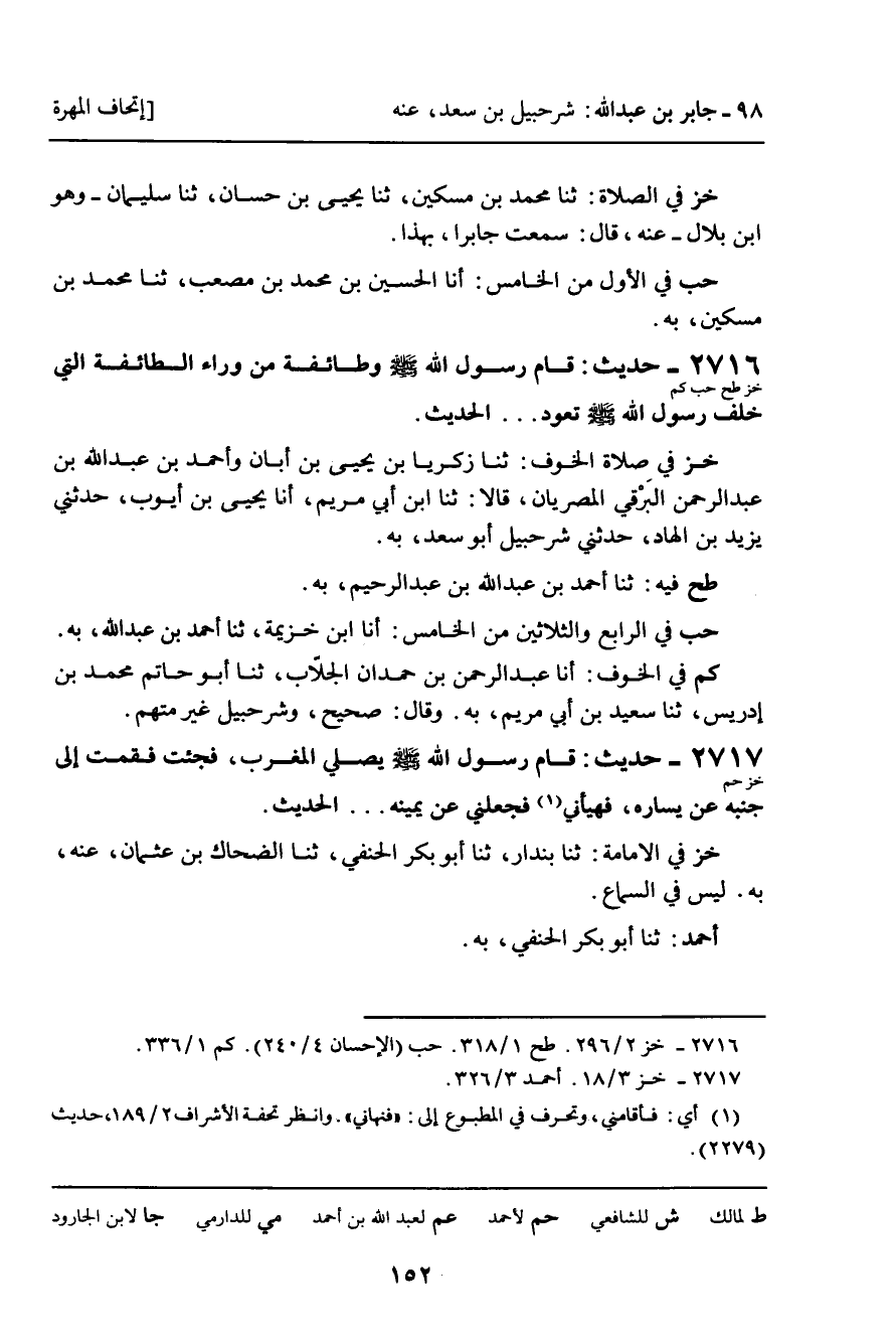 2716 - حَدِيثُ (خز طح حب كم) : قَامَ رَسُولُ اللَّهِ صَلَّى اللَّهُ عَلَيْهِ وَسَلَّمَ وَطَائِفَةٌ مِنْ وَرَاءِ الطَّائِفَةِ الَّتِي خَلْفَ رَسُولِ اللَّهِ صَلَّى اللَّهُ عَلَيْهِ وَسَلَّمَ تَعُودُ. . . الْحَدِيثَ.