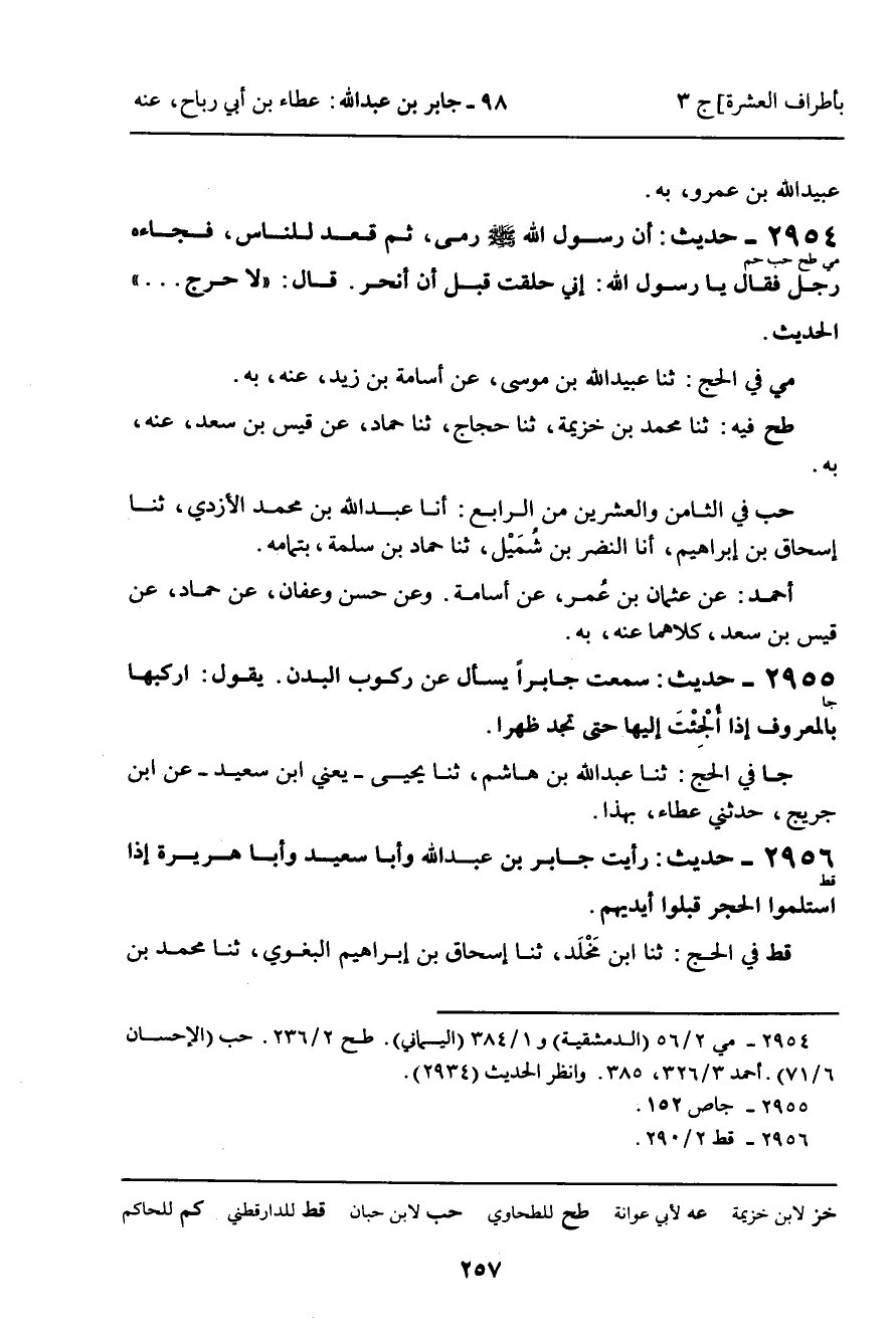 -[258]- رَبِيعَةَ، عَنِ ابْنِ جُرَيْجٍ، عَنْهُ، بِهَذَا. قَالَ: فَقُلْتُ: وَابْنُ عَبَّاسٍ؟ فَقَالَ: وَابْنُ عَبَّاسٍ حَسِبْتُهُ كَثِيرًا.