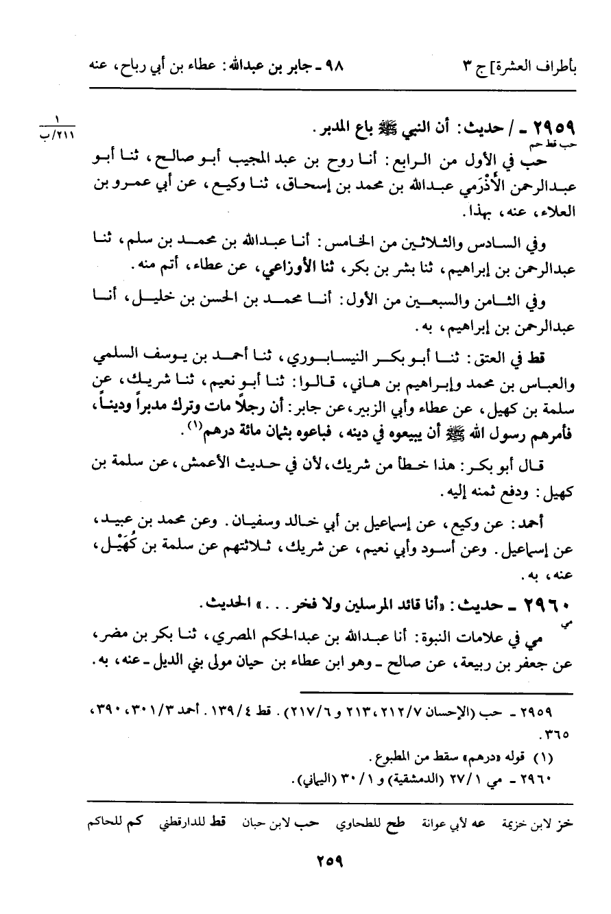2959 - حَدِيثُ (حب قط حم) : أَنَّ النَّبِيَّ صَلَّى اللَّهُ عَلَيْهِ وَسَلَّمَ بَاعَ الْمُدَبَّرَ.