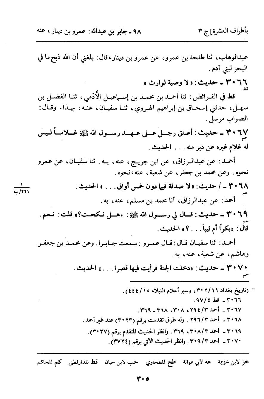 -[306]- أَحْمَدُ: ثنا سُفْيَانُ، عَنْ عَمْرٍو، وَابْنِ الْمُنْكَدِرِ، سَمِعَا جَابِرًا، بِهِ.