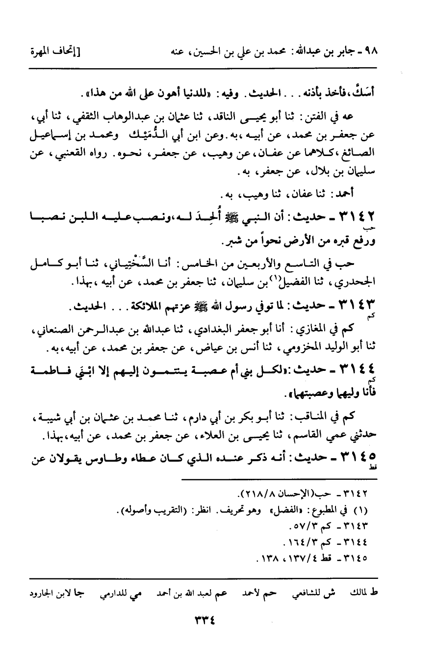 (حب) فِي التَّاسِعِ وَالأَرْبَعِينَ مِنَ الْخَامِسِ: أنا السَّخْتِيَانِيُّ، ثنا أَبُو كَامِلٍ الْجَحْدَرِيُّ، ثنا الْفُضَيْلُ بْنُ سُلَيْمَانَ، ثنا جَعْفَرُ بْنُ مُحَمَّدٍ، عَنْ أَبِيهِ، بِهَذَا.