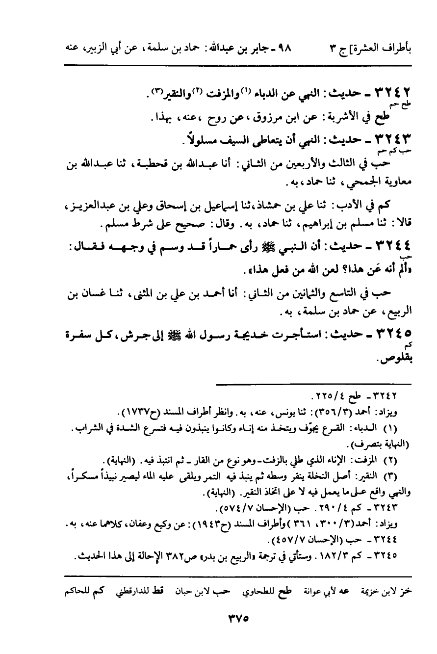 3242 - حَدِيثُ (طح حم) : النَّهْيُ عَنِ الدُّبَّاءِ وَالْمُزَفَّتِ وَالنَّقِيرِ.
